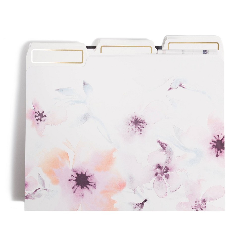 12 count fashion file folders * Includes 3 floral bloom fashion print designs 4 file folders each * One of a kind watercolor prints * 3 gold foil bordered tabs for easy labeling and organization * Holds standard 8.5 x 11 paper File in style with U Brands 12 count watercolor floral bloom fashion print file folders. Includes 3 classic designs to help stay organized without compromising style 4 folders of each designer print. 3 gold foil bordered tabs for easy labeling and organization of all work school or home filing needs. Holds standard 8.5 x 11 paper. Material: Paper Dimensions (Overall): 11.5 inches (L) x 9.45 inches (W) x .75 inches (D) Binder Fastener or Ring Type: Non-pronged Features: Top tab Number of Pockets: 0