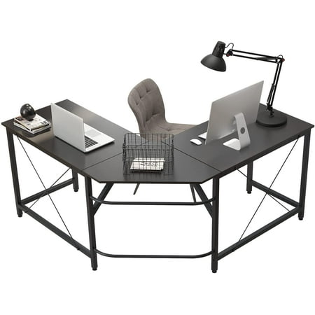 SogesPower Black Office Desk L-Shaped Desk Computer Corner Desk for Home Corner Table with CPU Stand 59 inch