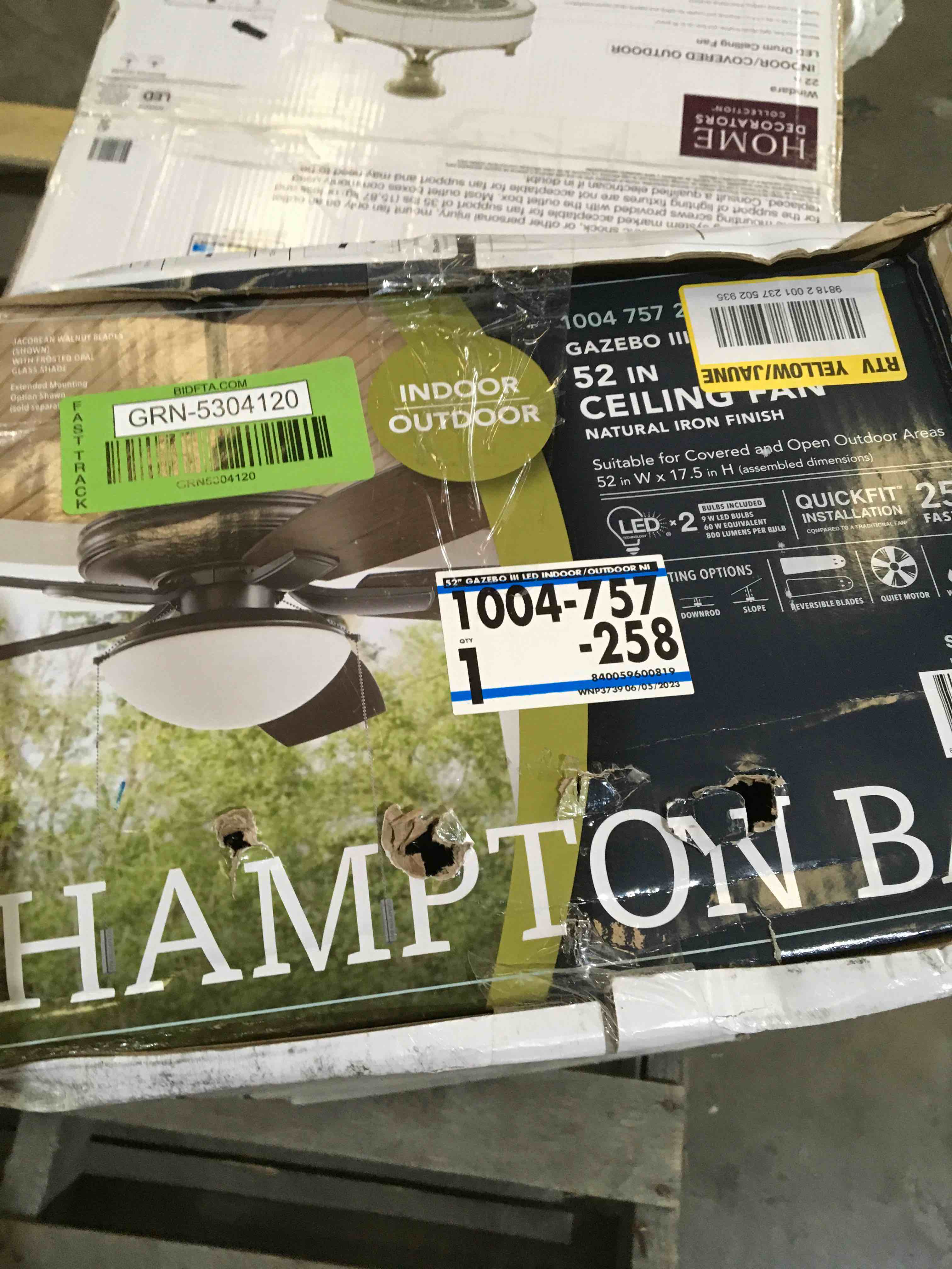The Hampton Bay Gazebo III Natural Iron Ceiling Fan features 5 reversible weather-resistant Jacobean Walnut/Natural Iron blades and a natural iron finish that looks great in either an indoor or outdoor setting. A dome-style light kit with frosted glass completes the overall design. The Gazebo has an optional 3-speed control with reverse setting and a wet-rated housing for outdoor use. Uses two 9-Watt LED bulbs (included).
