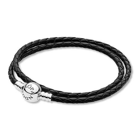 Silver leather bracelet, double, black Bracelet 38 cm 590745CBK-D2