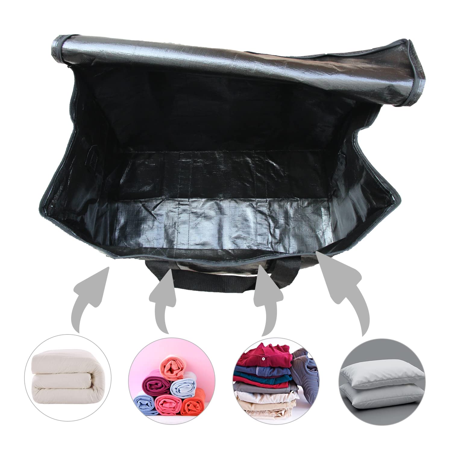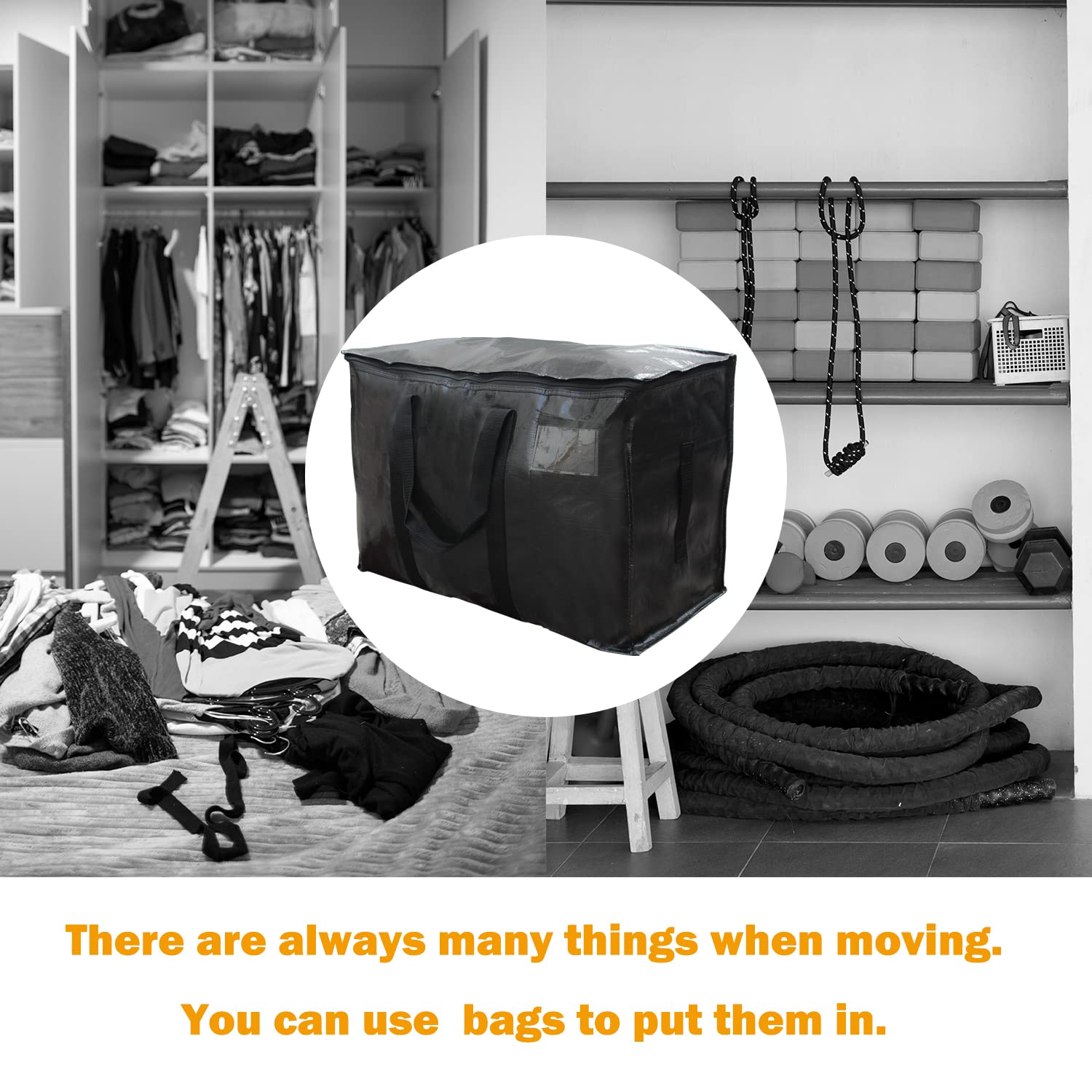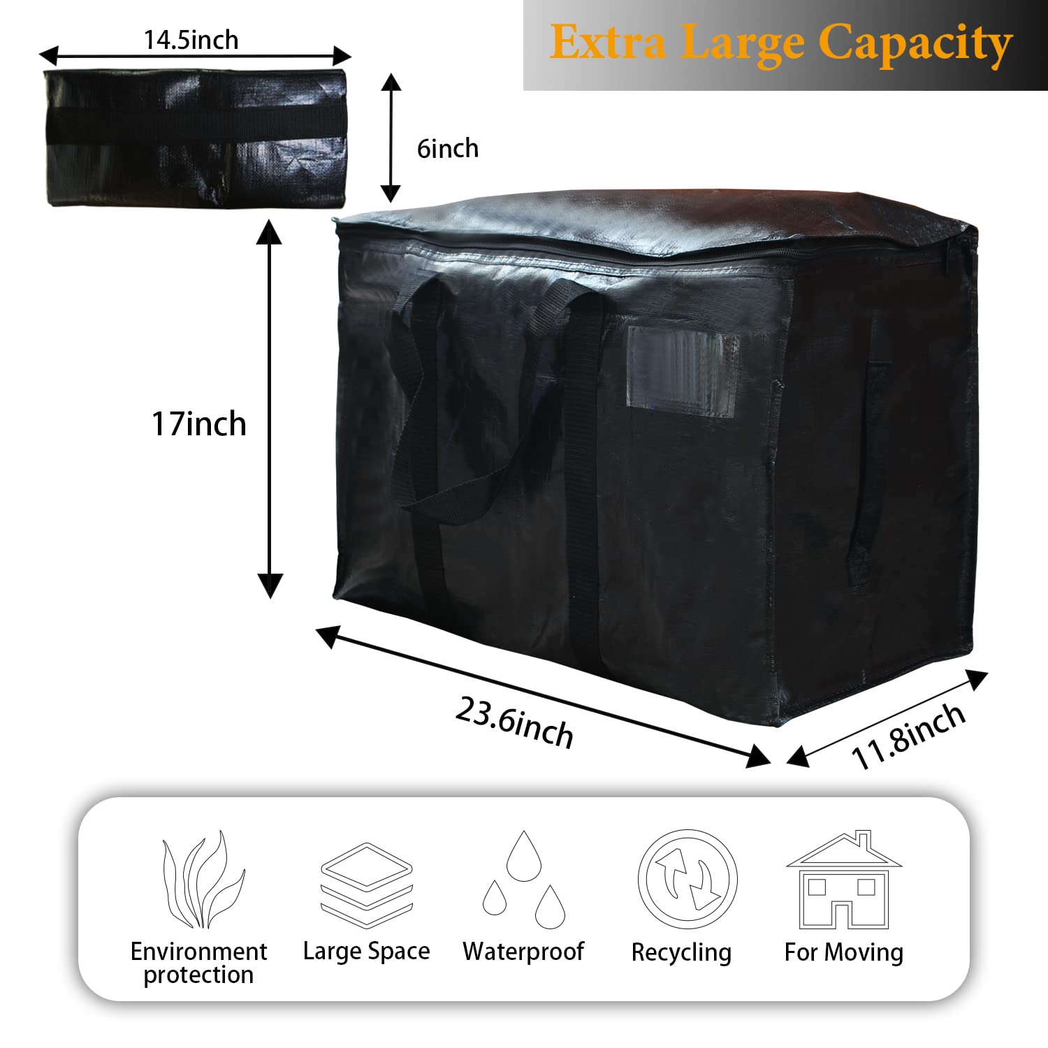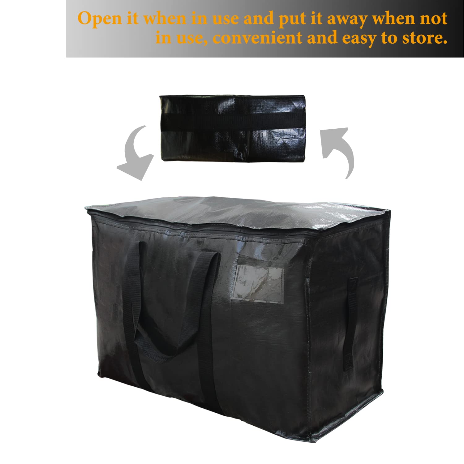 CUXFLS Moving Bags Heavy Duty Extra Large Stroage Bags with Strong Zippers and Handles for Moving Supplies, Foldable Heavy-Duty Storage Bags Storage for Space Saving, Alternative to Moving Boxes ?Black - S - Set of 6?
