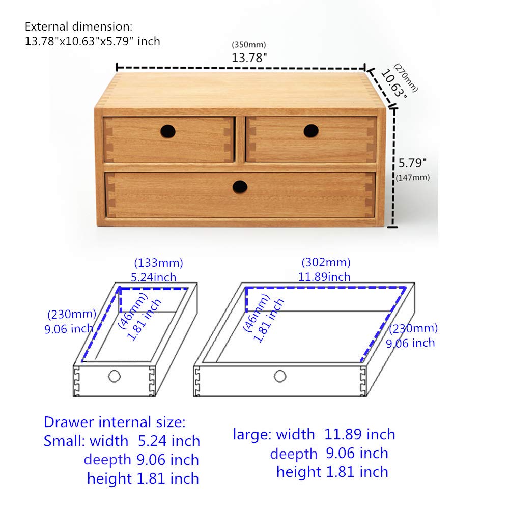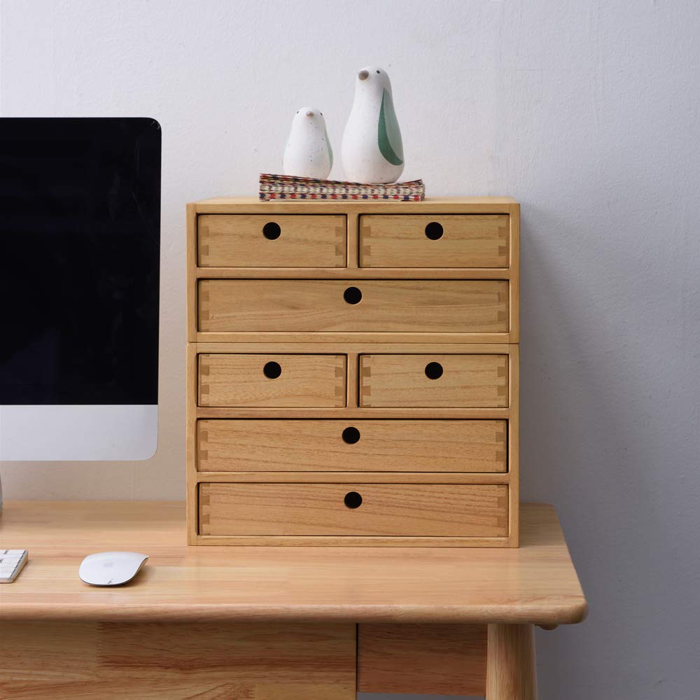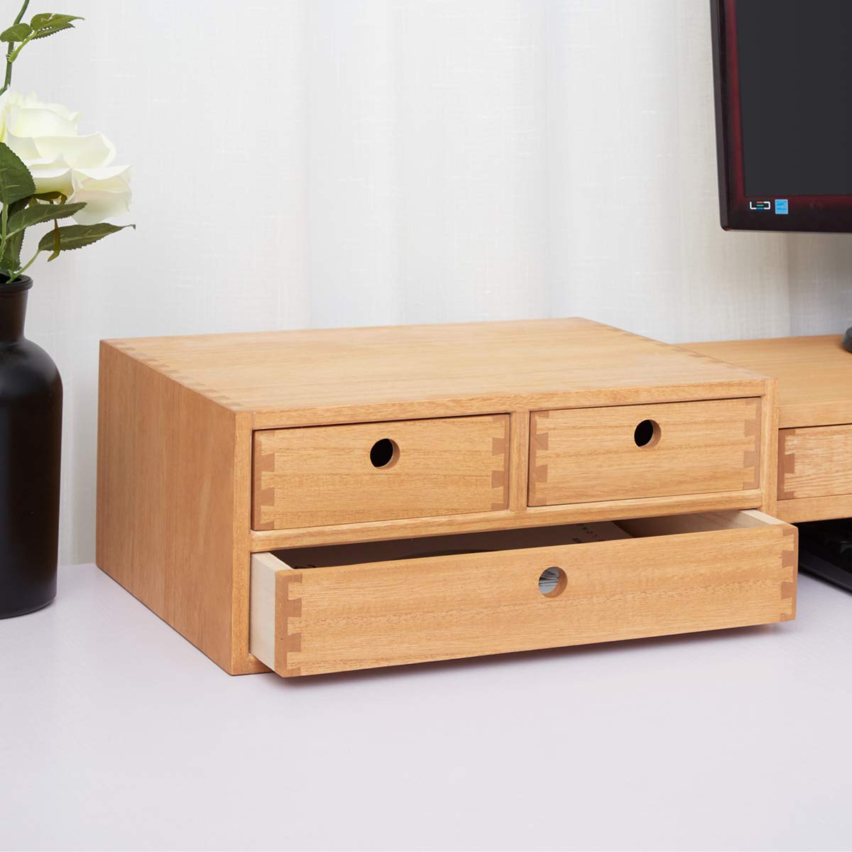 Kirigen Natural Wooden Desktop Organizer - Office Supplies Filing Tidy Storage Shelf - Storage Cabinet/Jewelry Organizer with 3 Drawers (NA, 2-Layer &3 Drawers)