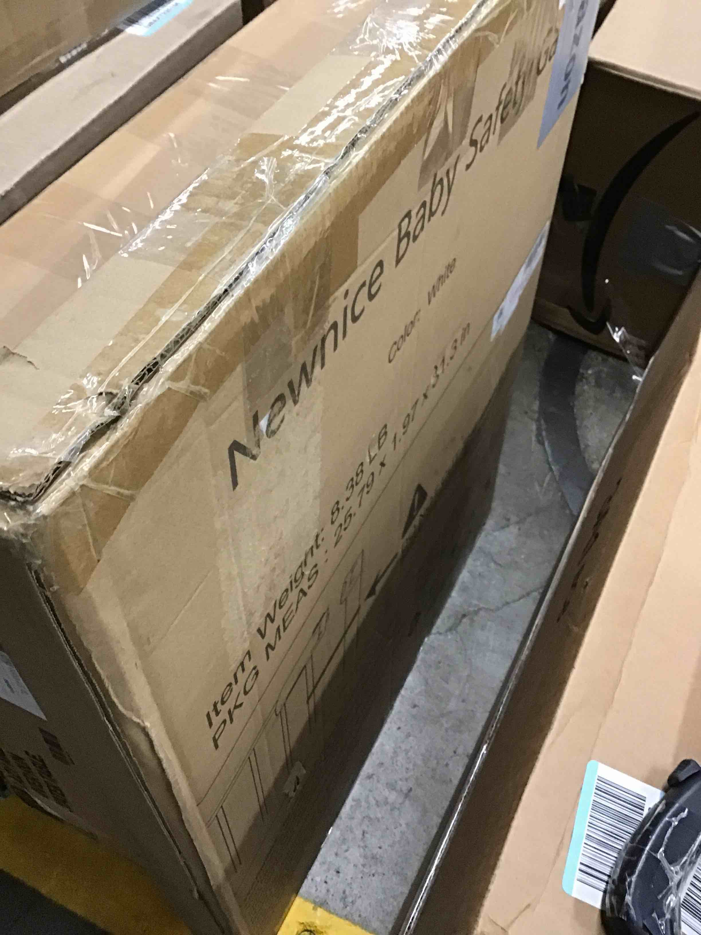 Newnice 26.7-29.5'' Narrow Baby Gate with Cat Door, Auto Close & Easy Walk Thru Dog Pet Gates for Stairs, Doorway, House, Pressure Mounted Safety Child Gate Includes 4 Wall Cups, NO Extensions, White