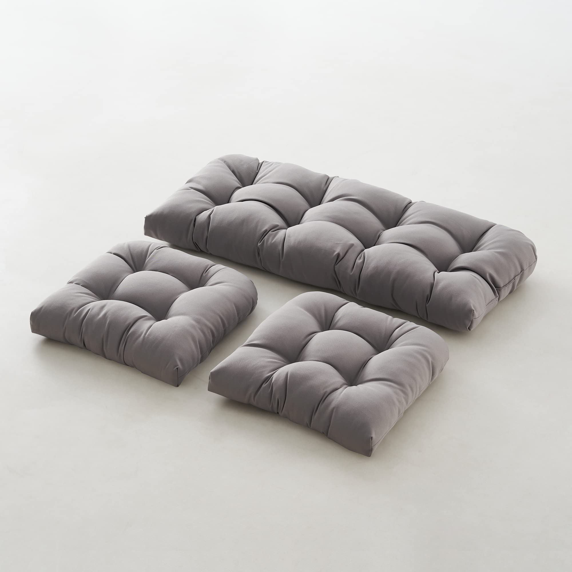 BLISSWALK Outdoor Chair Cushions,3 Piece Loveseat Outdoor Cushions Set,Tufted/Wicker Patio Cushion for Patio Furniture All Weather??îGrey