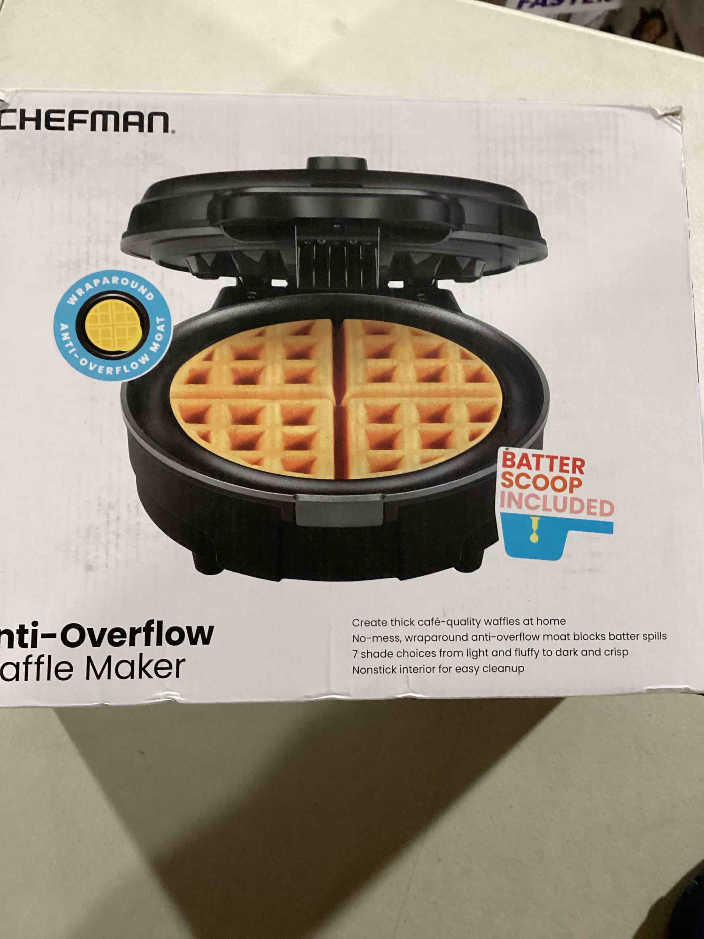 It’s time to make a change to your waffle routine! Fresh Belgian waffles and a clean counter-top have always been the unachievable dream for the home cook and breakfast enthusiast. With the mess-free, Anti-Overflow Waffle Maker, Chefman has made those dreams a reality. Gone are the days of worrying about batter leakage and overflow only to see it end up all over the countertop. Designed with a wrap-around channel to catch any excess batter this unique feature prevents any batter from overflowing or leaking; measuring cup included for easy pouring and rests on the side of your bowl. The shade selector makes it easy to customize your waffles, whether you like them light and fluffy or extra crispy! The non-stick plates make cleanup a breeze – no spray needed. Breakfast has never been cleaner, simpler, or more delicious! Stay away from the freezer section - from now on, fresh waffles will be just as easy. cETL approved with advanced safety technology for long lasting durability, and 1-year assurance provided