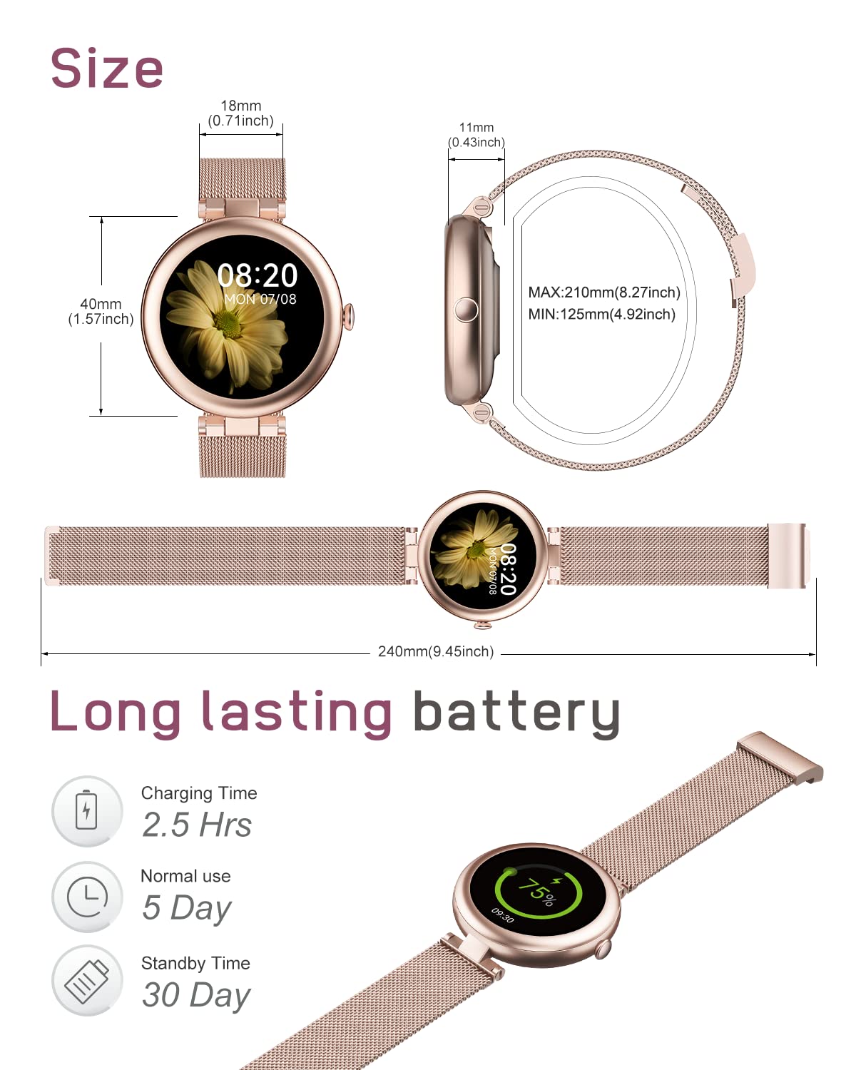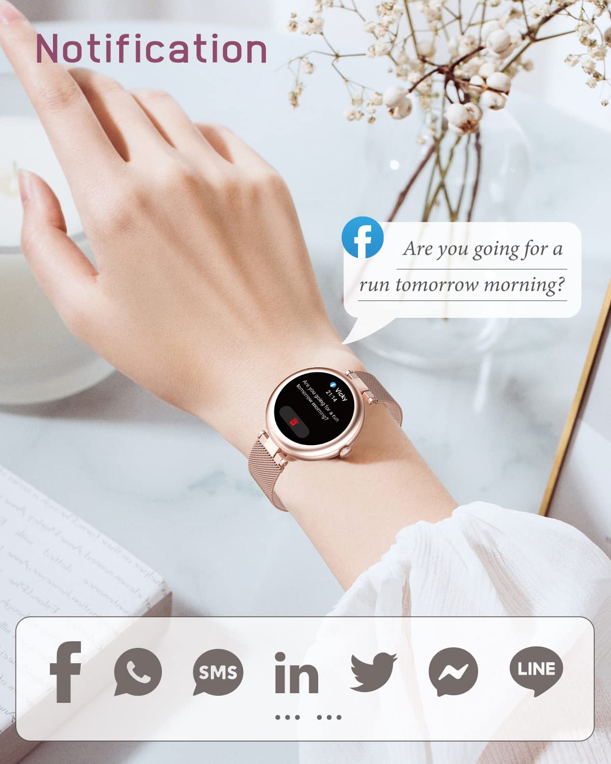 Smart Watch for Women IP68 Waterproof, Round Women's Watch for iOS Android Phones Fitness Tracker Smartwatch with Heart Rate Monitor Steps/Sleep Tracker Slim Gold (Sport & Metal Bands Included), LYNN