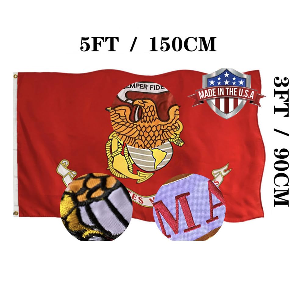Embroidered US Marine Corps (USMC) Military Flags 3x5 Outdoor- 340D Heavy Duty Nylon Double Sided USMC Flag Banner with 2 Grommets