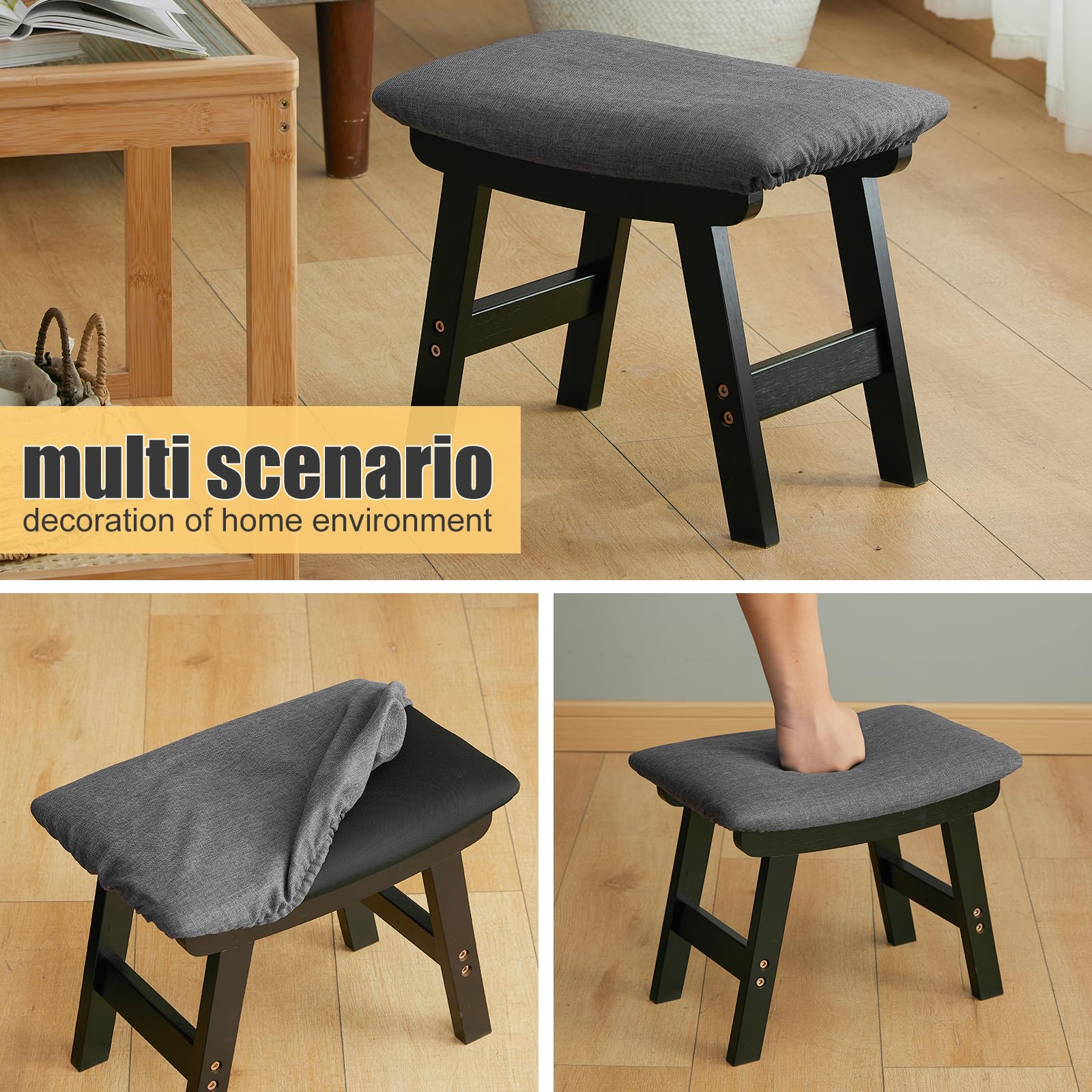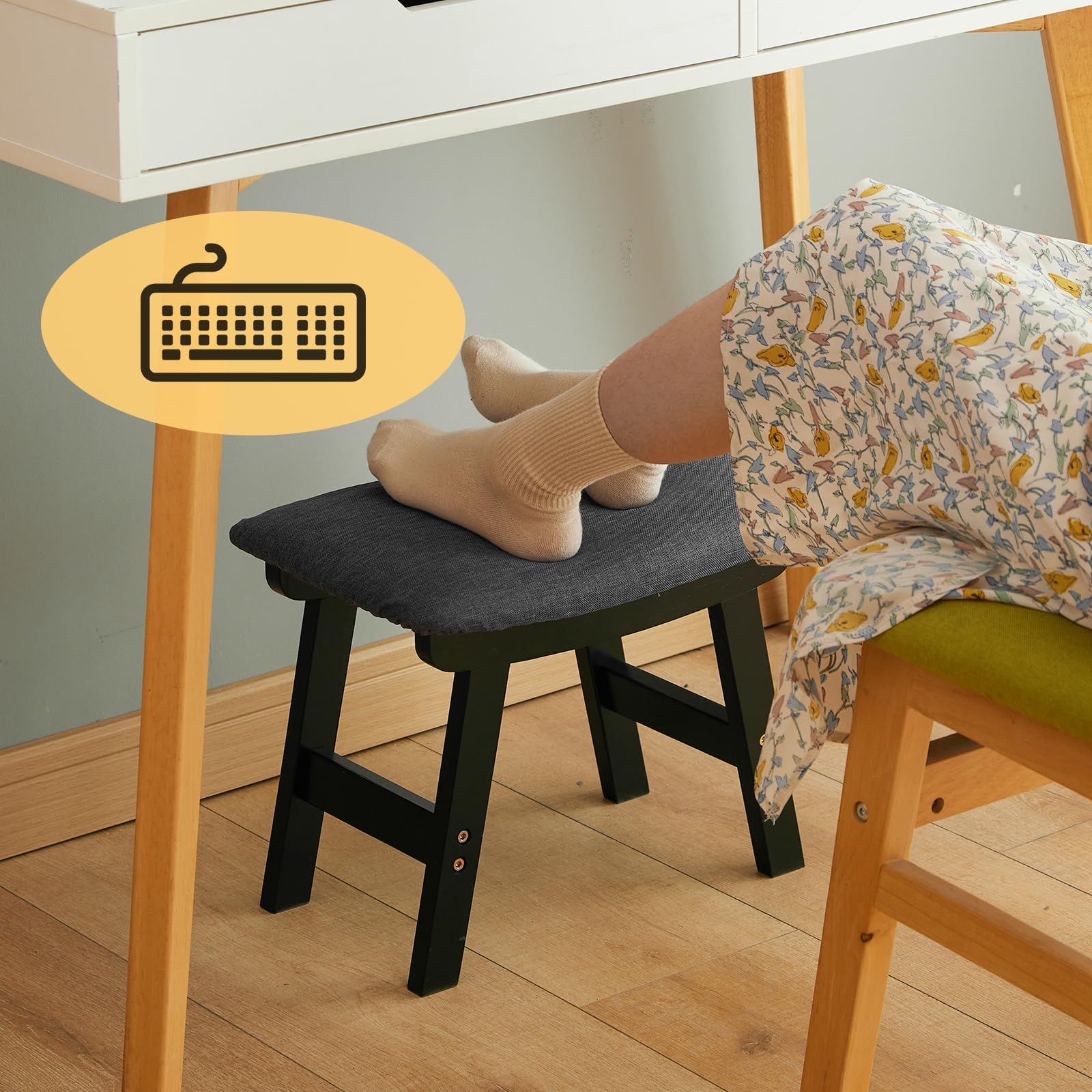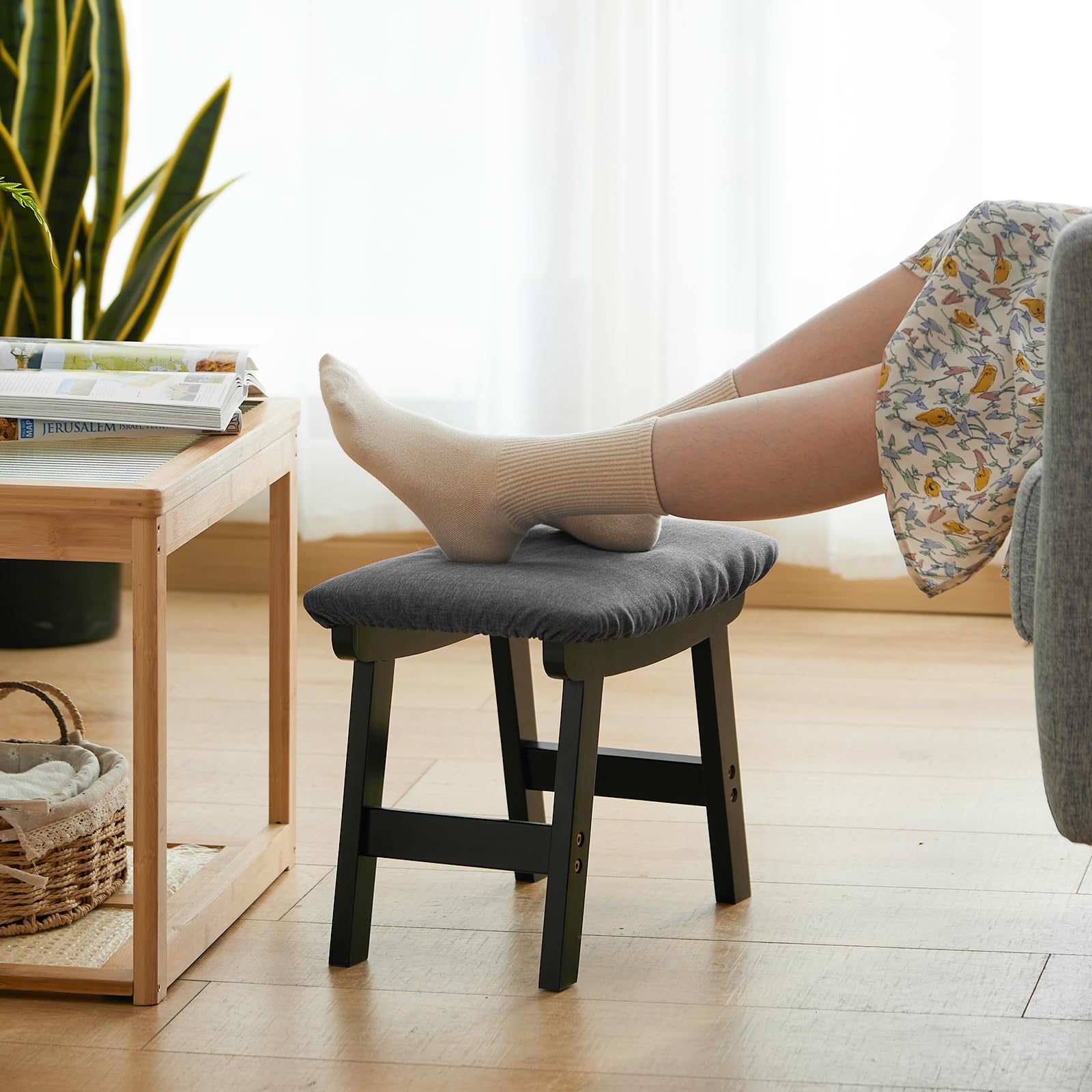 Foot Stool,Ottoman Foot Rest,Bamboo Foot Stool Under Desk,Small Stool for Living Room, Bedroom and Kitchen (Black Legs - Gray Stool Surface)
