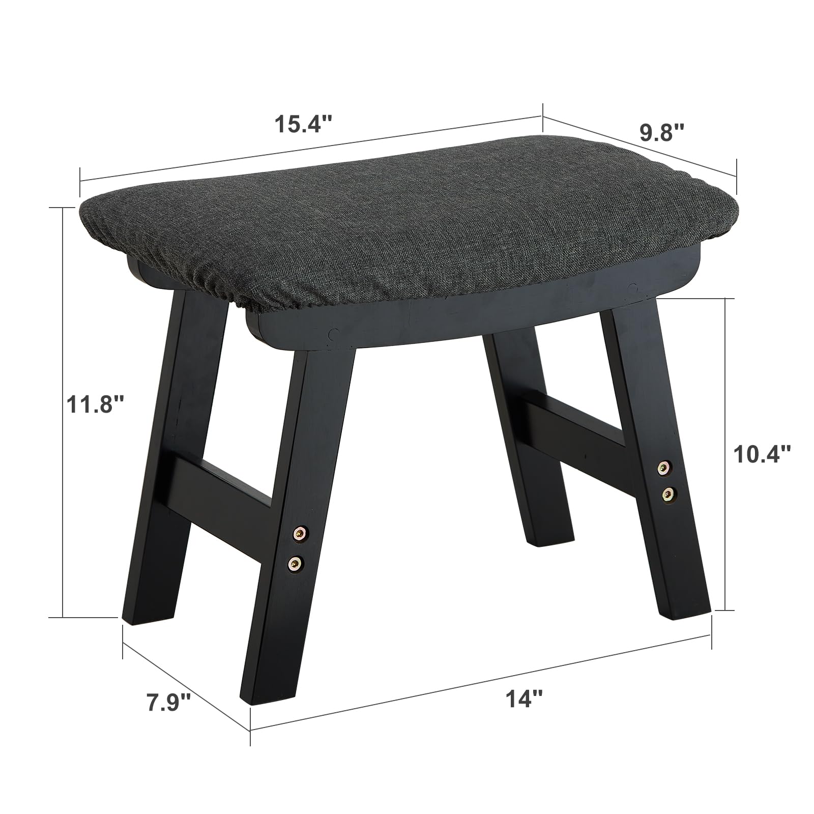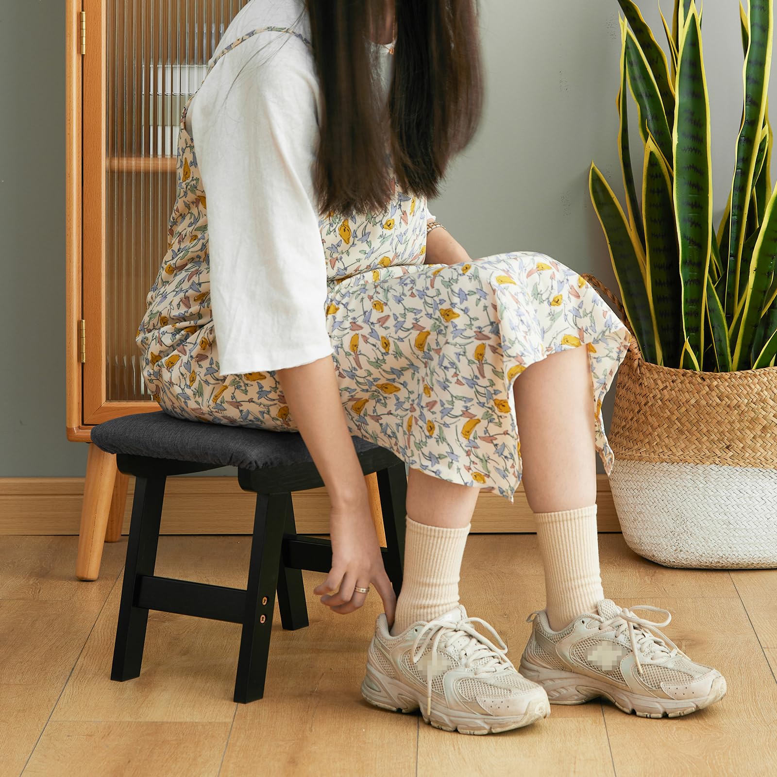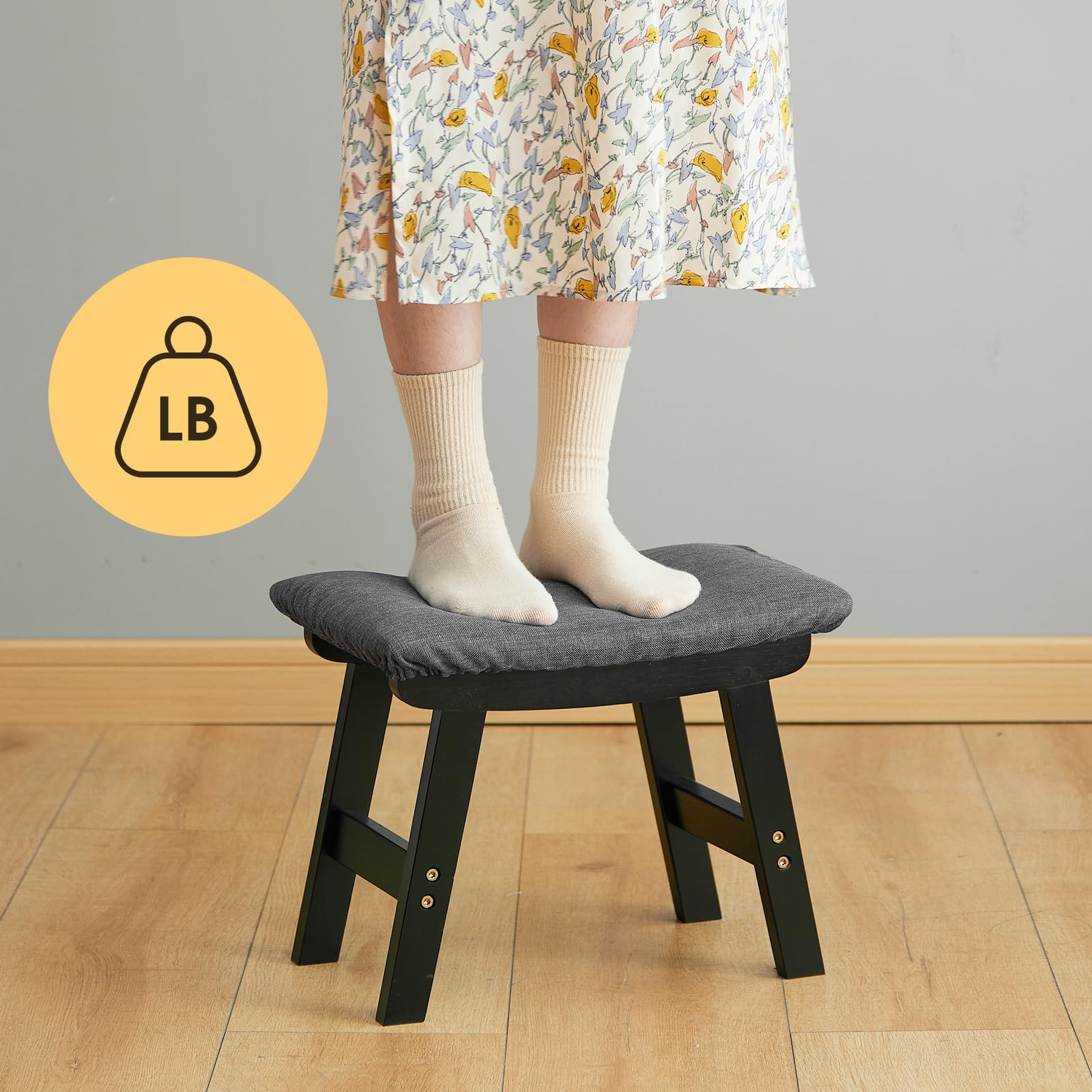 Foot Stool,Ottoman Foot Rest,Bamboo Foot Stool Under Desk,Small Stool for Living Room, Bedroom and Kitchen (Black Legs - Gray Stool Surface)