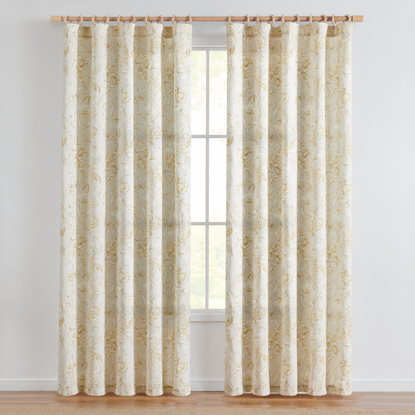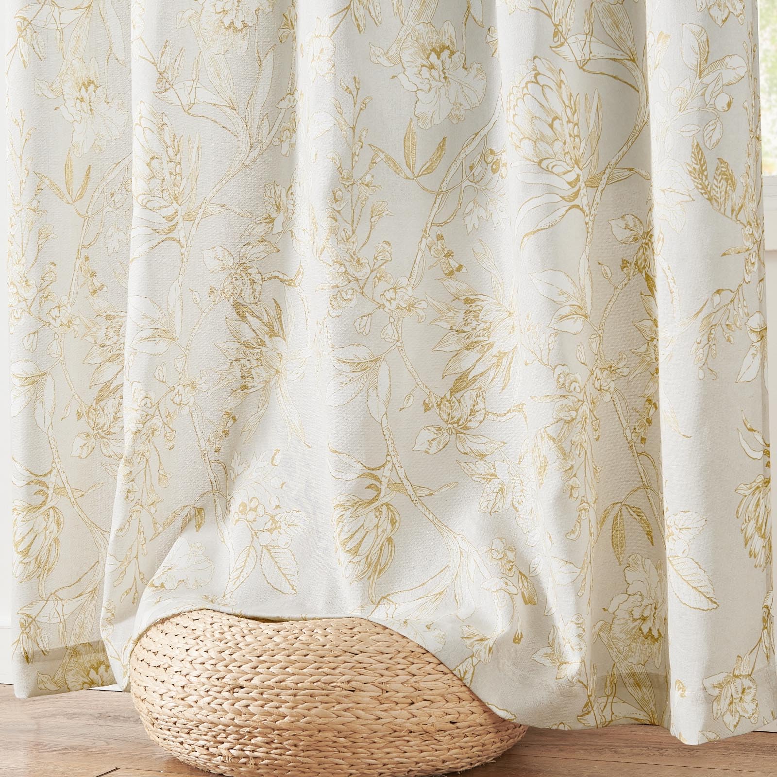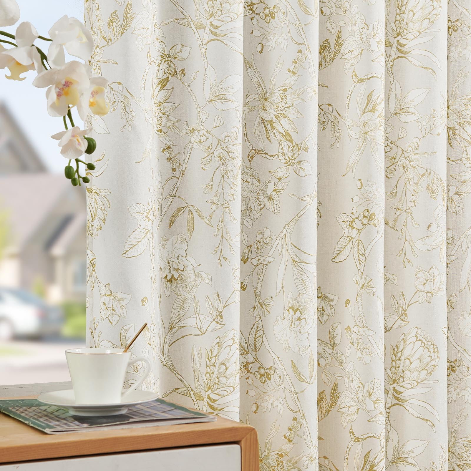 jinchan Floral Curtains 84 Inches Long Mustard Yellow Flower Linen Farmhouse Curtains for Living Room French Country Vintage Curtains Rod Pocket Curtains Set 2 Panels Mustard Yellow Flower Curtains