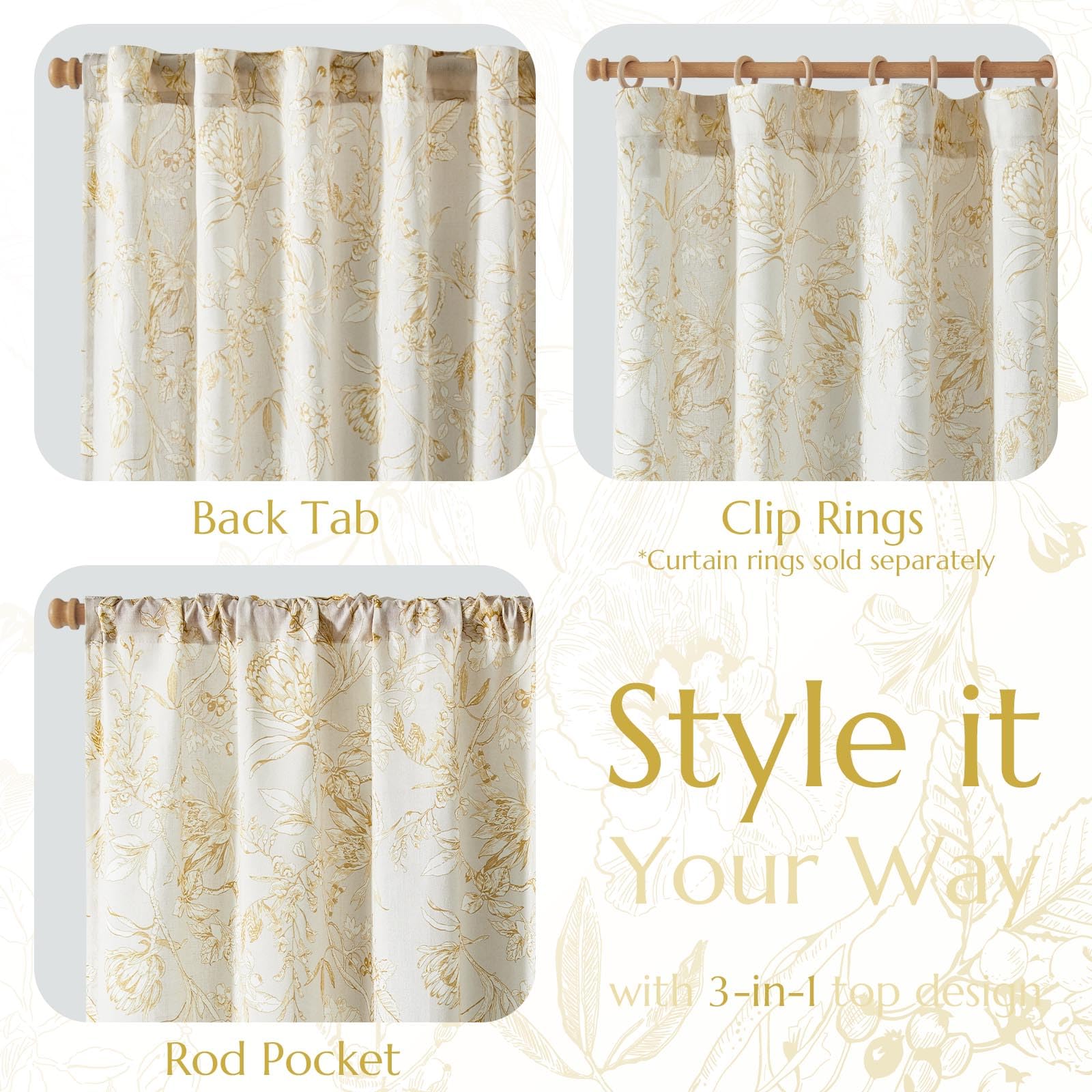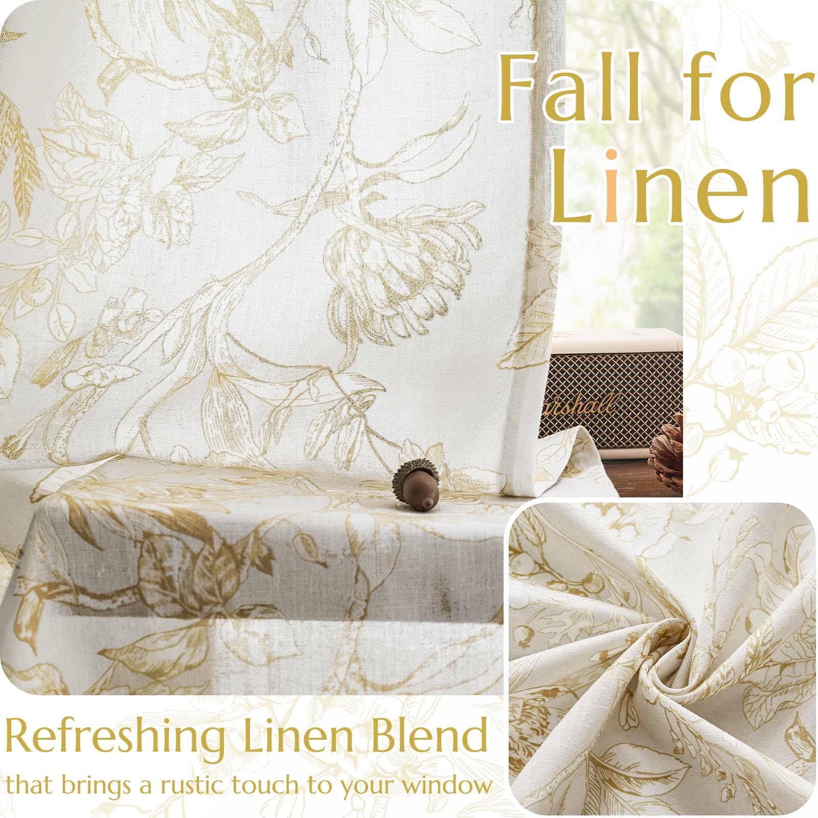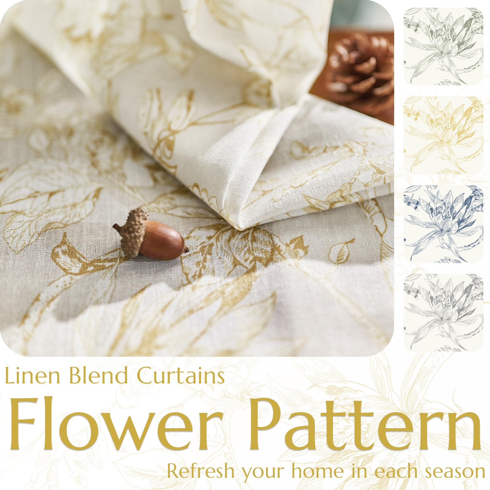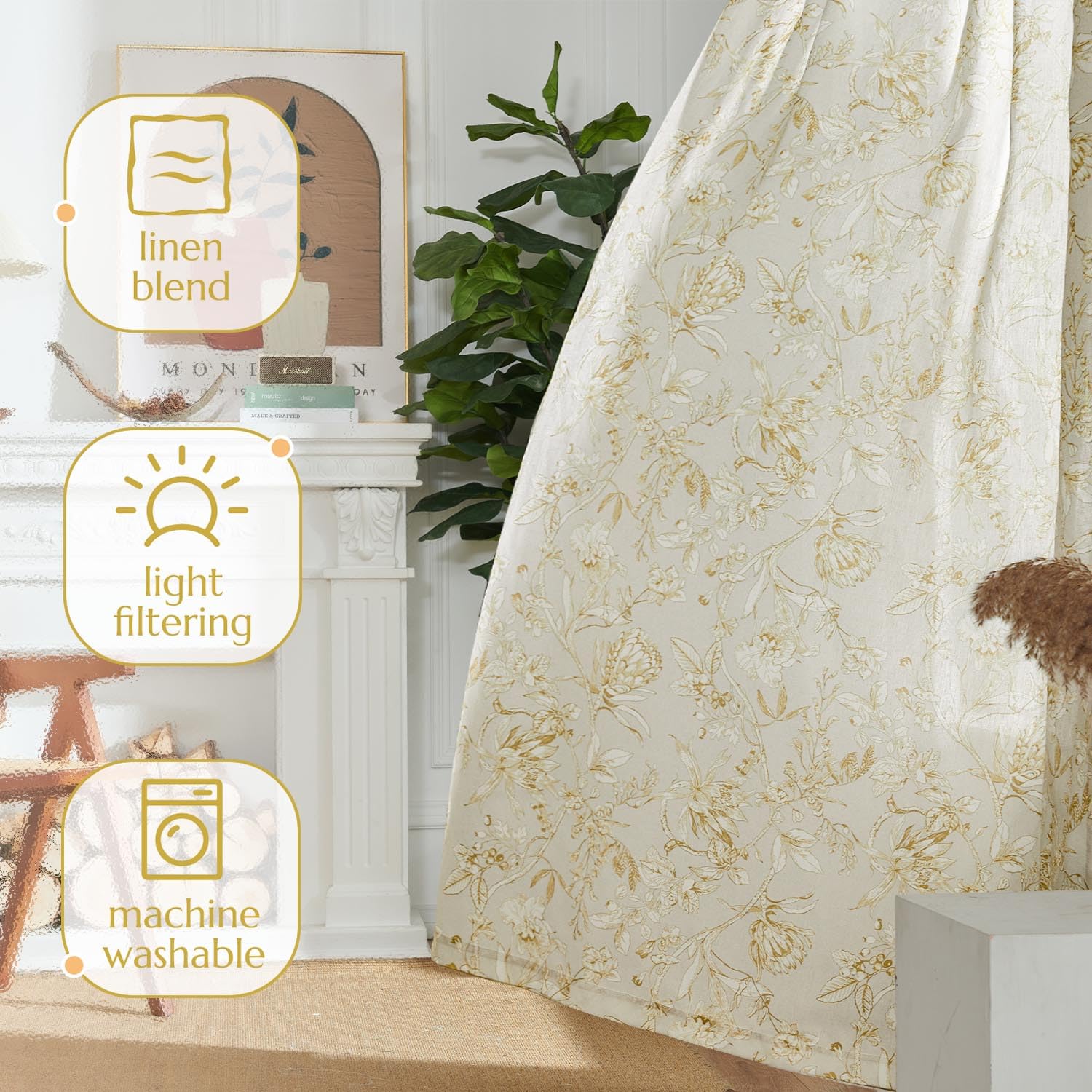 jinchan Floral Curtains 84 Inches Long Mustard Yellow Flower Linen Farmhouse Curtains for Living Room French Country Vintage Curtains Rod Pocket Curtains Set 2 Panels Mustard Yellow Flower Curtains