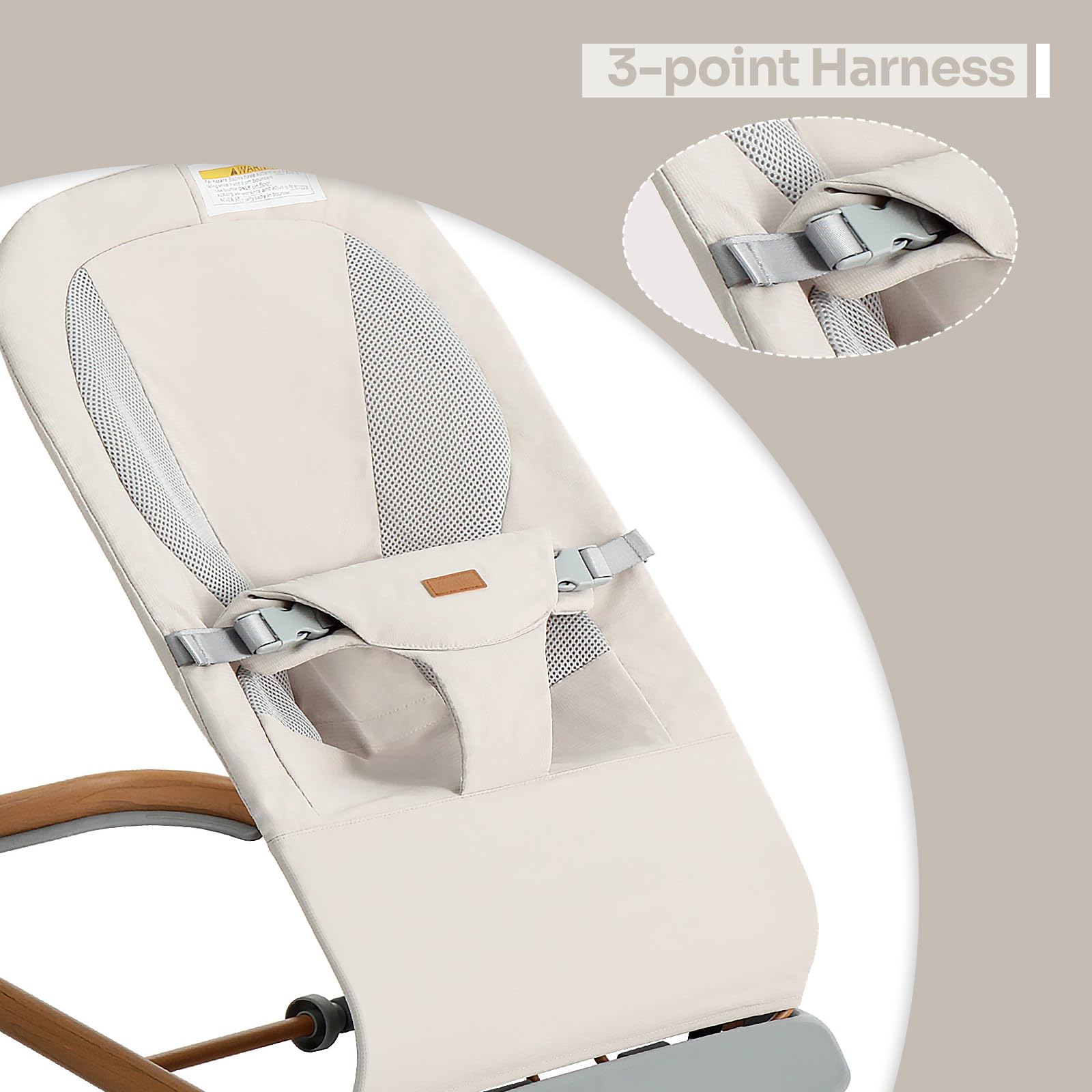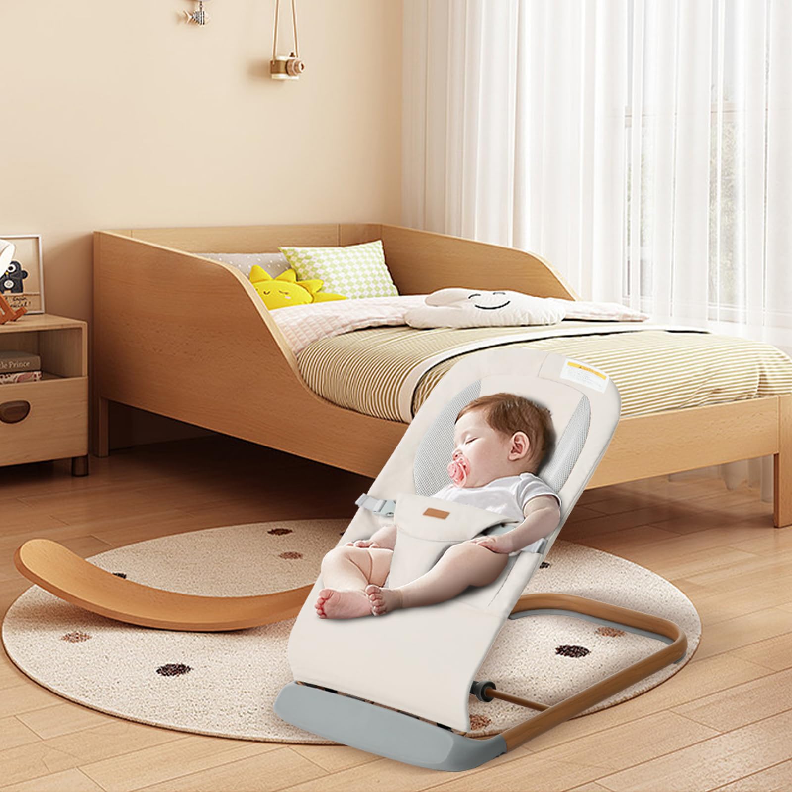 AMKE CooCon Baby Bouncer,Ergonomic Bouncer Seat for Babies with 3 Recline Positions,Portable Newborn Bouncer Seat, Mesh Design Bouncers for Infants,Beige
