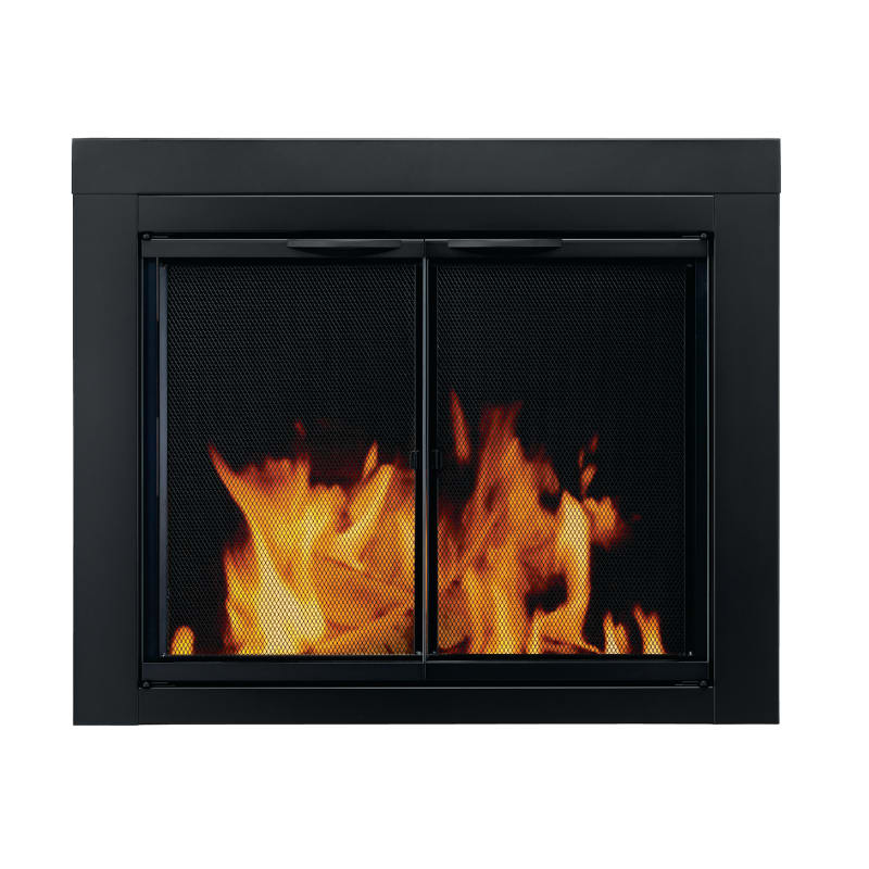The Pleasant Hearth Alpine Cabinet Fireplace Screen and Glass Doors - Black adds style and sophistication to your traditional masonry fireplace. Its one-piece construction is designed for mounting against flat surfaces and can be installed in 3 easy steps. It features handles hidden damper-control knobs for airflow and heat-resistant insulation. About GHP Group GHP Group creates electric fireplaces accessories log sets and other heating options found in homes across America. With years of experience and a close attention to detail their products exceed industry standards of safety quality durability and functionality. Whether you re warming a room or just making a relaxing glow there s a GHP Pleasant Hearth product for you.