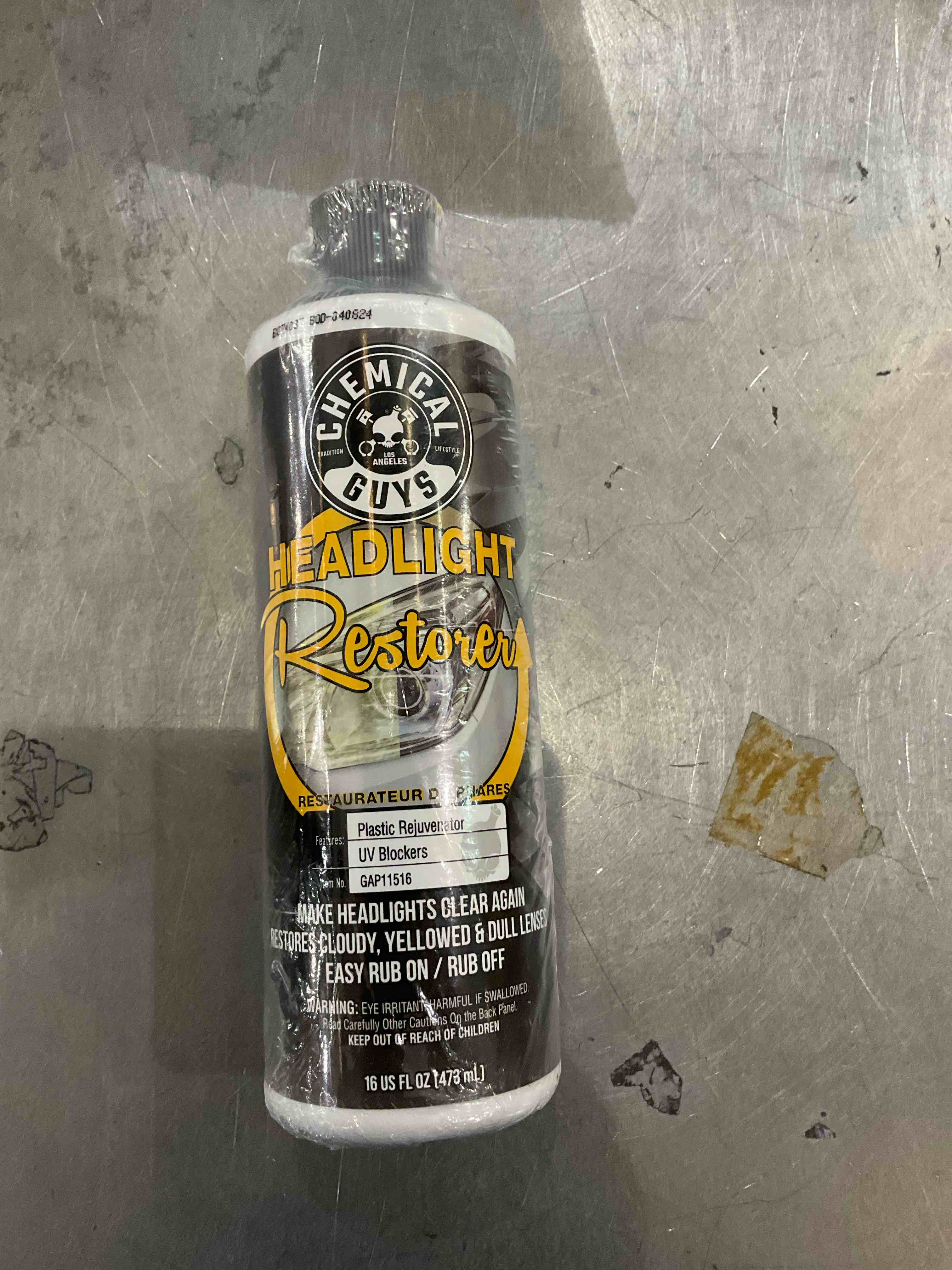Chemical Guys Headlight restore and protect restores yellow, foggy, and hazy UV damaged headlights. The advanced polish and synthetic Protectant in one makes it easy for anyone to make headlights clearer and brighter. Dull and damaged headlights make it h
