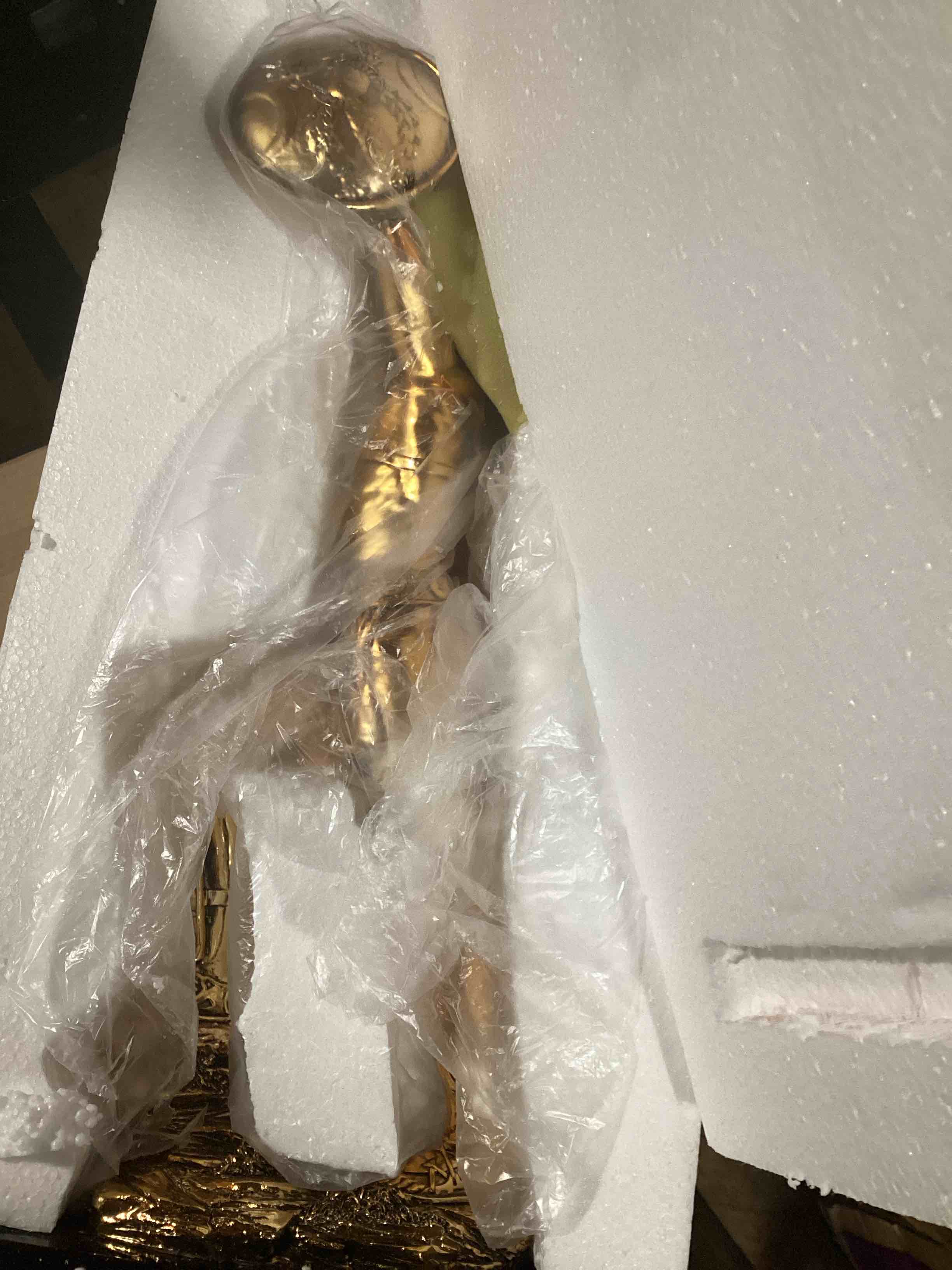 Looking up to Caesar for approval after victory, our incredibly detailed gladiator is truly authentic, from laced sandals to acanthus leaf shield and Greenman shin guards. Crafted from more than a foot-and-a-half of cold-cast resin, he boasts a copper-plated finish, hand-buffed to a bright sheen to capture each intricate nuance. Our exclusive museum replica is set atop a wood museum base for display in home or gallery. 9"Wx4½ "Dx19"H. 6 lbs.