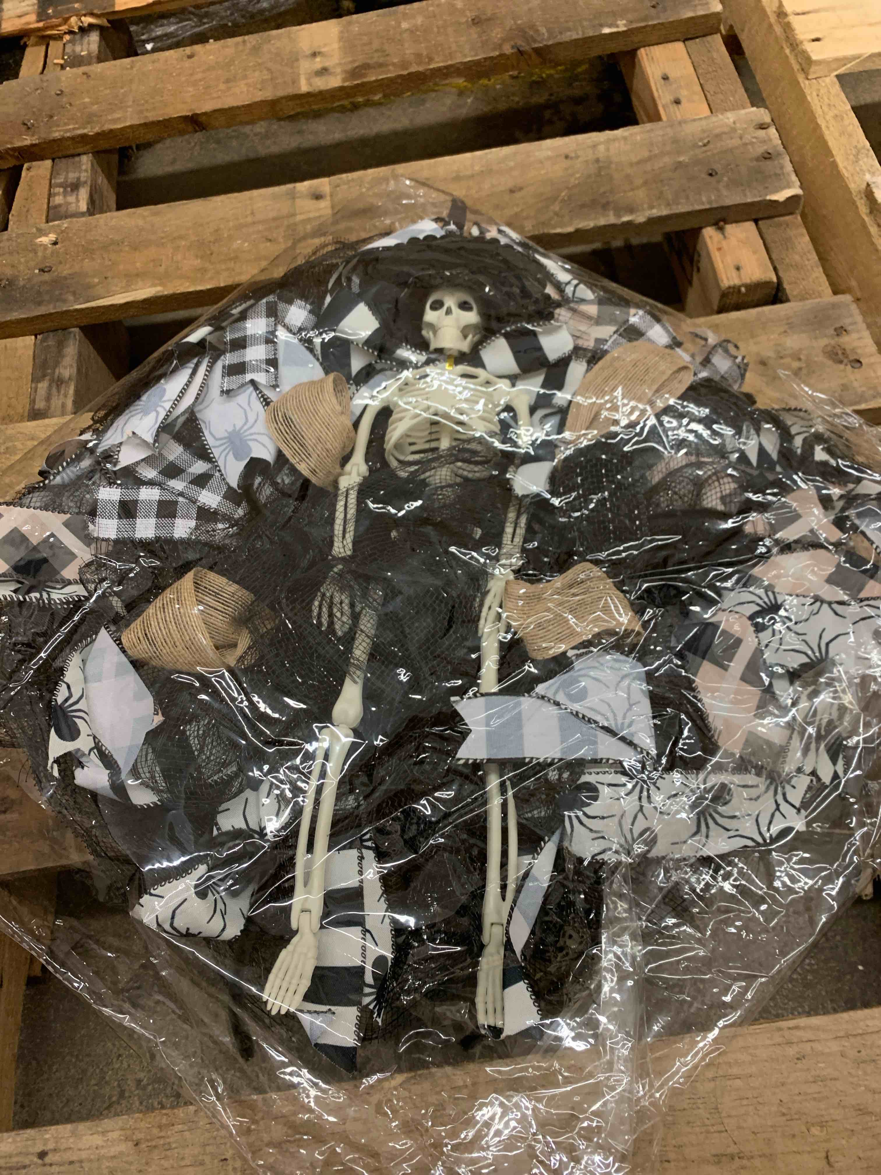 Halloween Skeleton Wreath for Front Door 16 Inch Black Wreath with Witches Hat Ornament Garland Spooky Elegant Decoration for Door, Porch, Window, Indoor and Outdoor Decor (Skeleton)