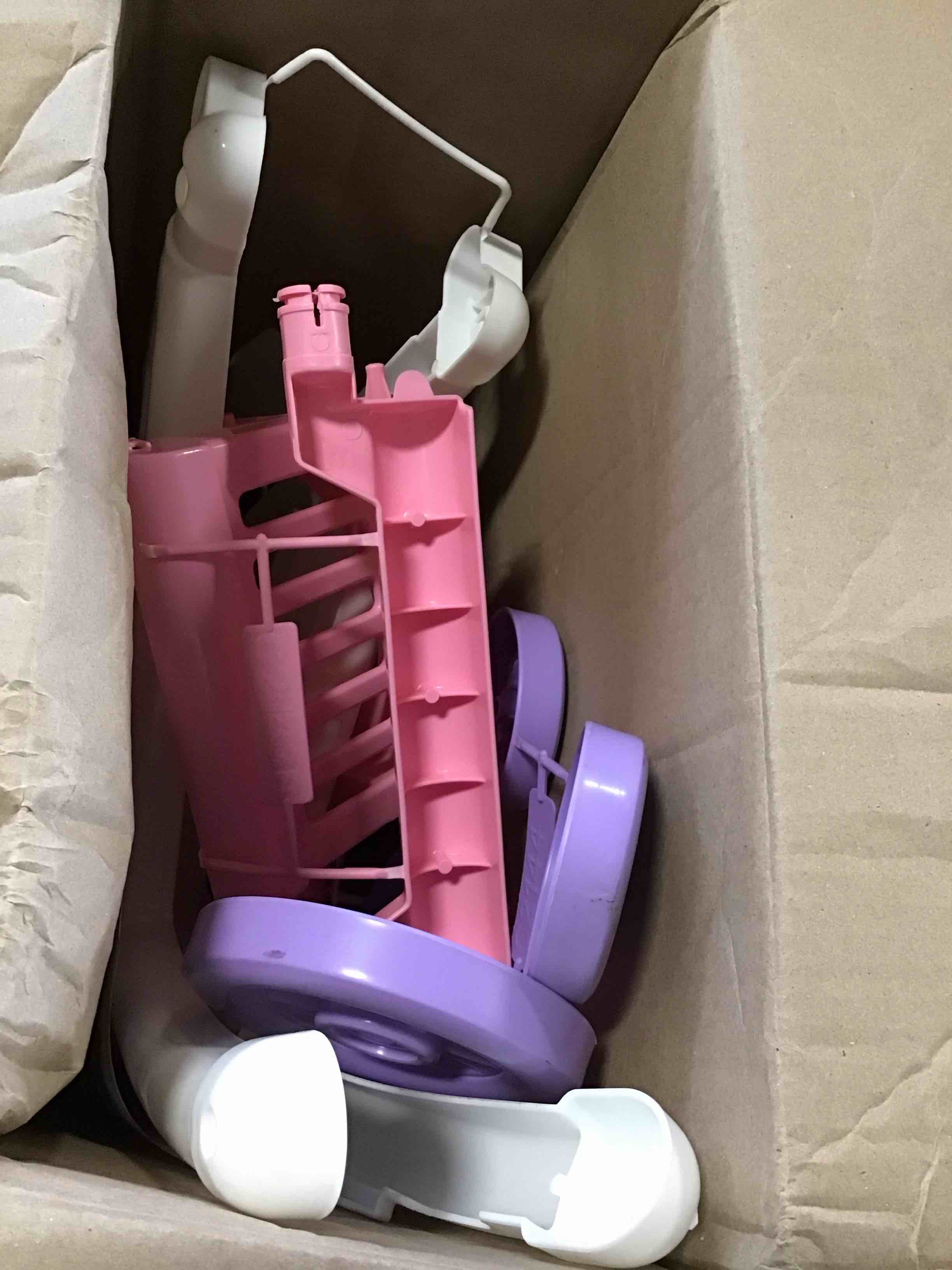 The American Plastic Toys Shop with Me Stroller features a sleek 2-in-1 design which includes both a stroller and shopping cart. This easy-to-push cart allows your child to take their baby doll to the grocery store just like Mom and Dad! Encourages role play and helps builds motor skills for toddlers. This lightweight stroller featuring adorable light pink, white, and purple accents will be a great companion for your little one. Recommended for ages 2 and up.Includes 22.5 x 13.125 x 19.875” stroller with attached shopping cart and carrying bed for baby doll. Doll not included. Adult assembly required. Made out of durable, BPA-free, and phthalate-free plastic to ensure endless hours of fun and safety for your child. Built to withstand everyday wear and tear. Made in the USA. All materials have been domestically sourced. From the Manufacturer Stroller comes with its own shopping cart and carrying bed for the baby. Take baby shopping in this sturdy stroller. Doll is not included.