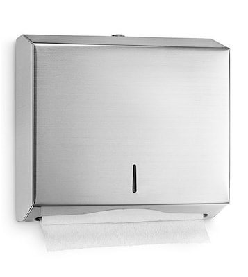 The Alpine Industries C-Fold/Multi-fold paper towel dispenser is ideal for high traffic restrooms break rooms food service facilities health-care facilities and more. This commercial toilet paper dispenser is made of durable stainless steel with a brushed finish and features a lock to help prevent tampering and vandalism. The dispenser features a sight window on the front to monitor fill level and holds up to 290 C-fold or 380 multi-fold towels. The paper towel dispenser can easily be mounted to any wall or surface.