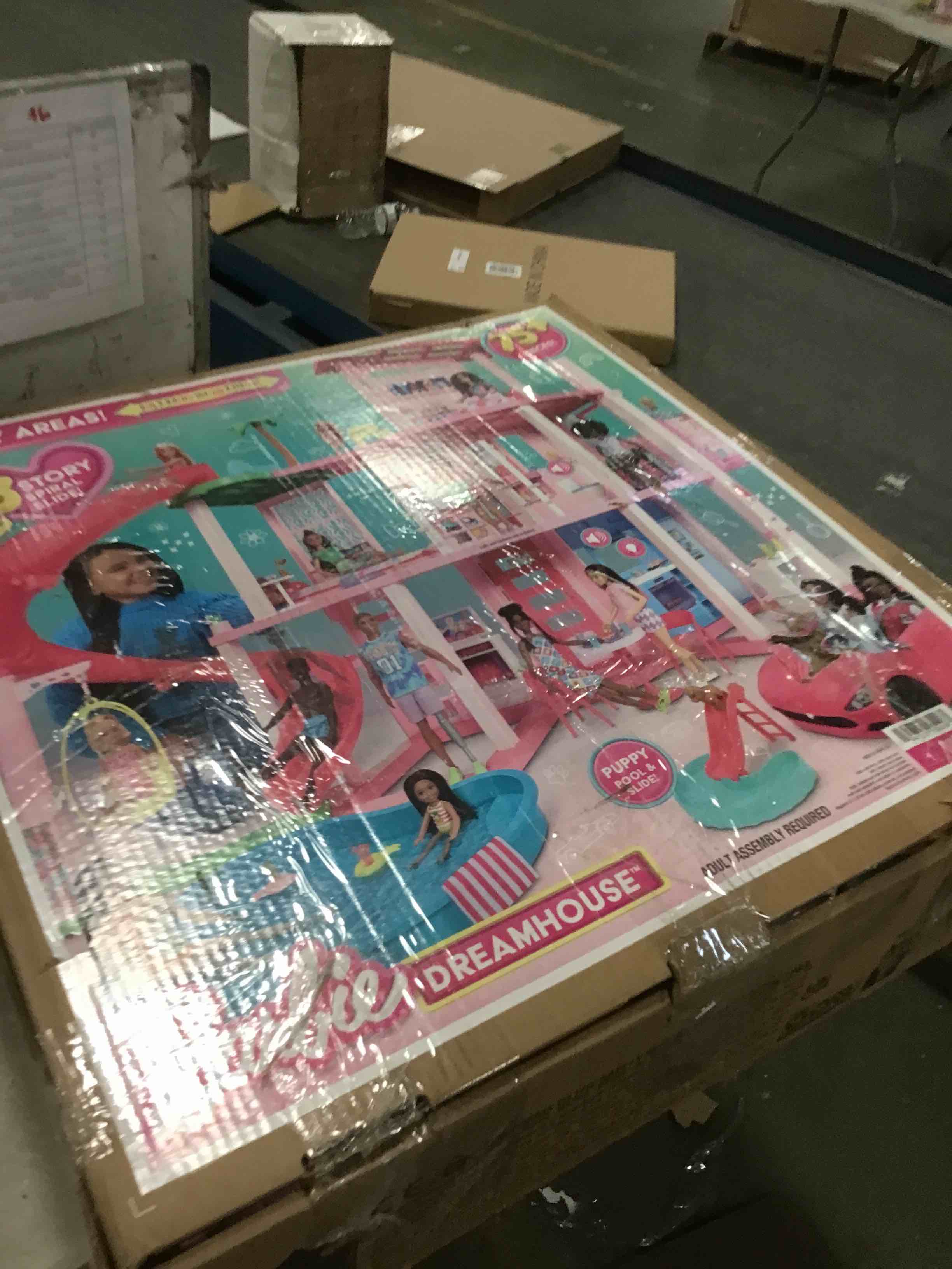 Kids can host the ultimate pool party with the Barbie Dreamhouse! This deluxe doll house has the tallest slide in the Barbie Dreamhouse series to date, with a three-story spiral design for endless fun in the sun. It inspires 360-degree play with a wide and spacious floorplan, three levels, and 10 indoor and outdoor living areas. The playset also features more pet-friendly touches than ever before, including a puppy slide and pool where furry friends can play along with Barbie doll! Plus, the top floor bonus room wows with a sleepover transformation that allows the Dreamhouse to sleep four dolls. With 75+ accessories and customizable spaces that double the fun, it makes an exceptional present for kids ages 3 years old and up. Assembly required. Dolls not included. Colors and decorations may vary.