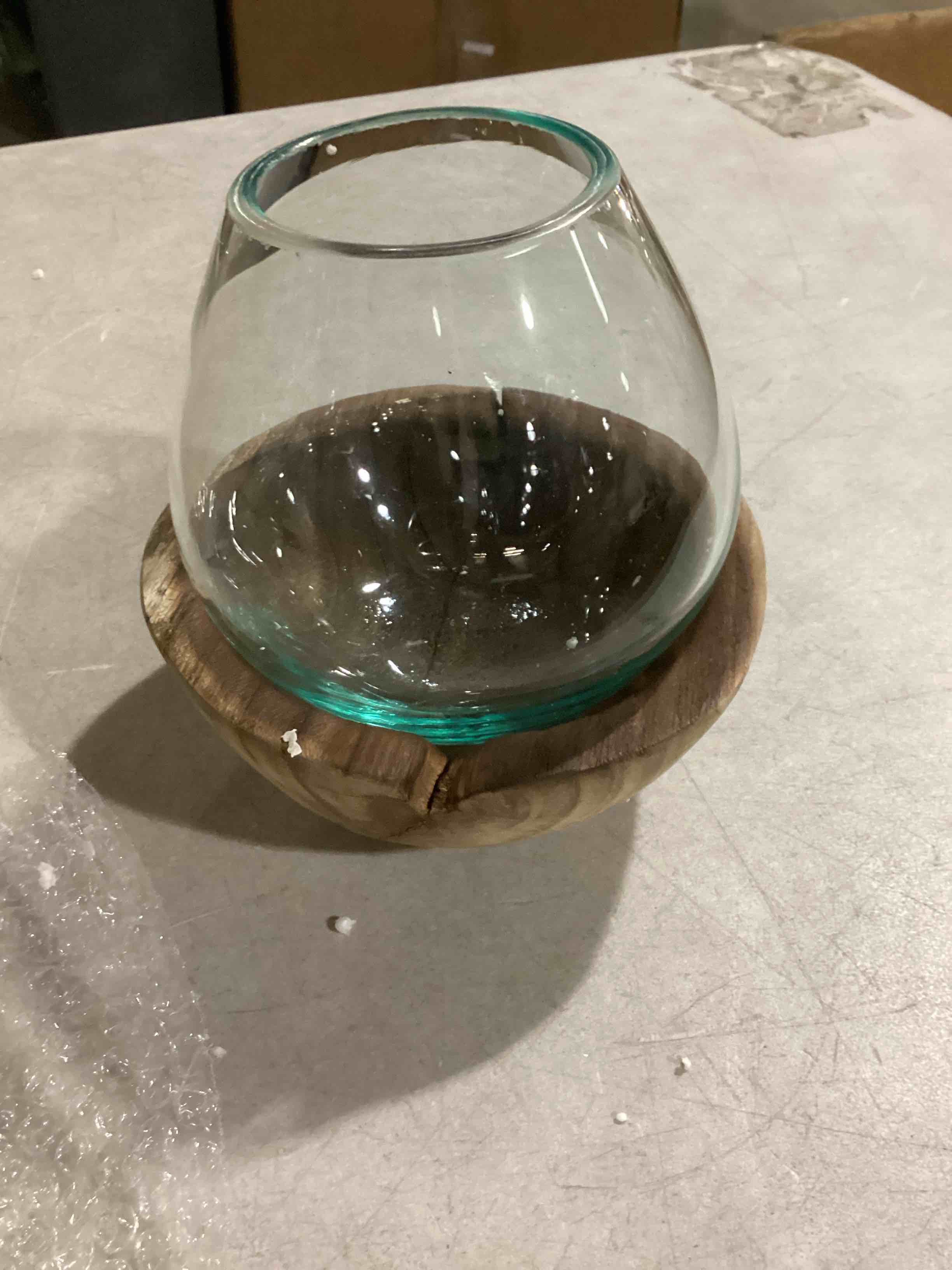 Celestina Glass Vase/Hurricane On Natural Wood Base