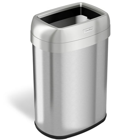 iTouchless - 13 Gallon Elliptical Open Top Trash Can and Recycle Bin with Dual AbsorbX Odor Filters, Stainless Steel, Office Home - Stainless Steel/Silver