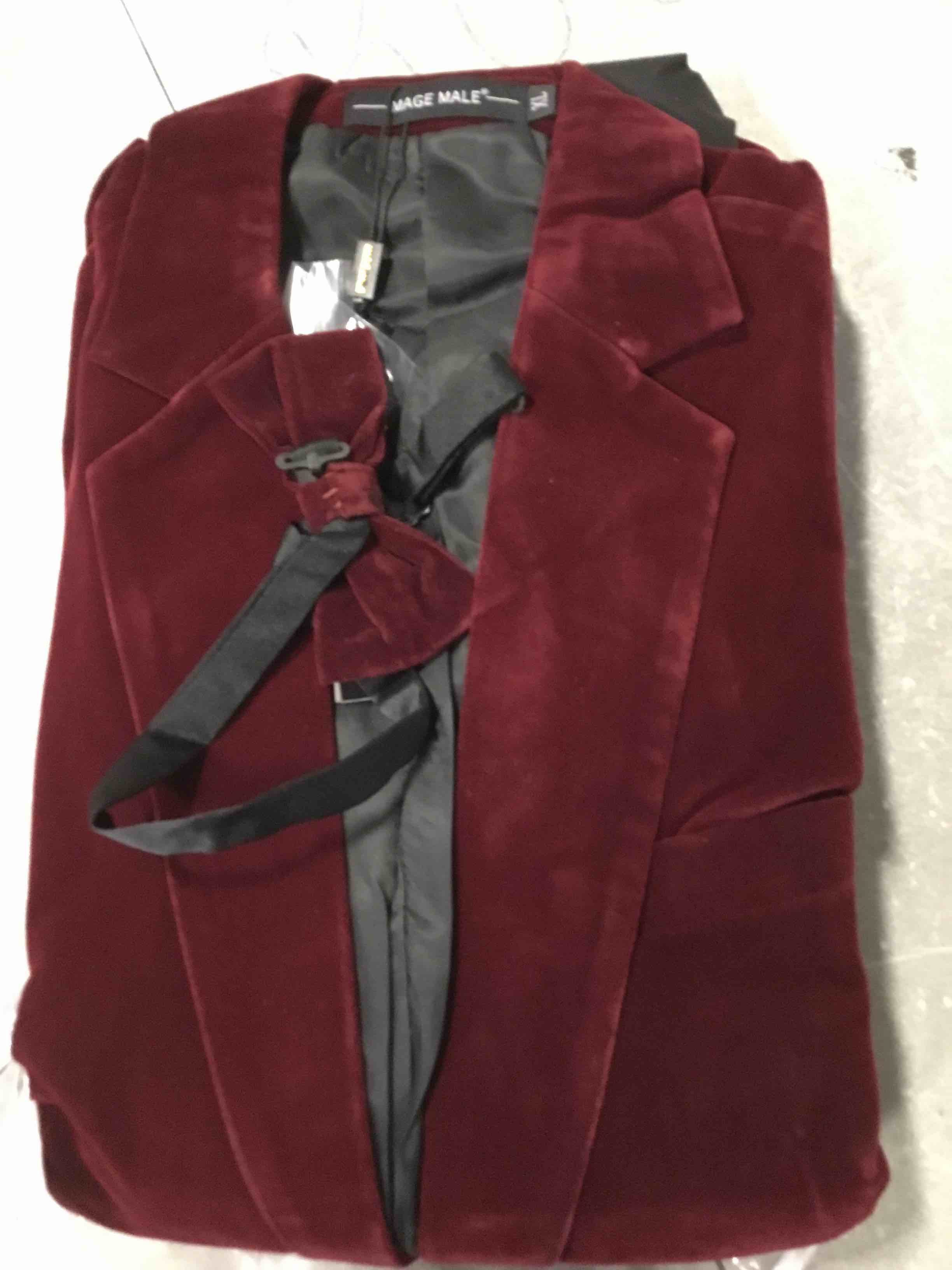 MAGE MALE Men's 2 Piece Velvet Suit Solid Color One Button Slim Fit Tuxedo Blazer Party Dinner Jacket & Pants X-Large Red