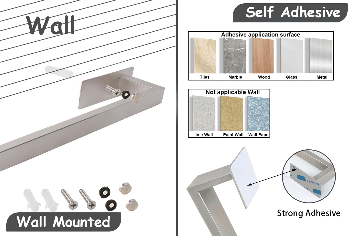 (SIMILAR MODEL) Bathroom Towel Bar Self Adhesive, No Drilling Towel Rack Easy to Install, Hand Towel Holder Made of Premium Stainless Steel Sticky on Hand Towel Hanger for Kitchen, Toilet.(18IN, Brushed)