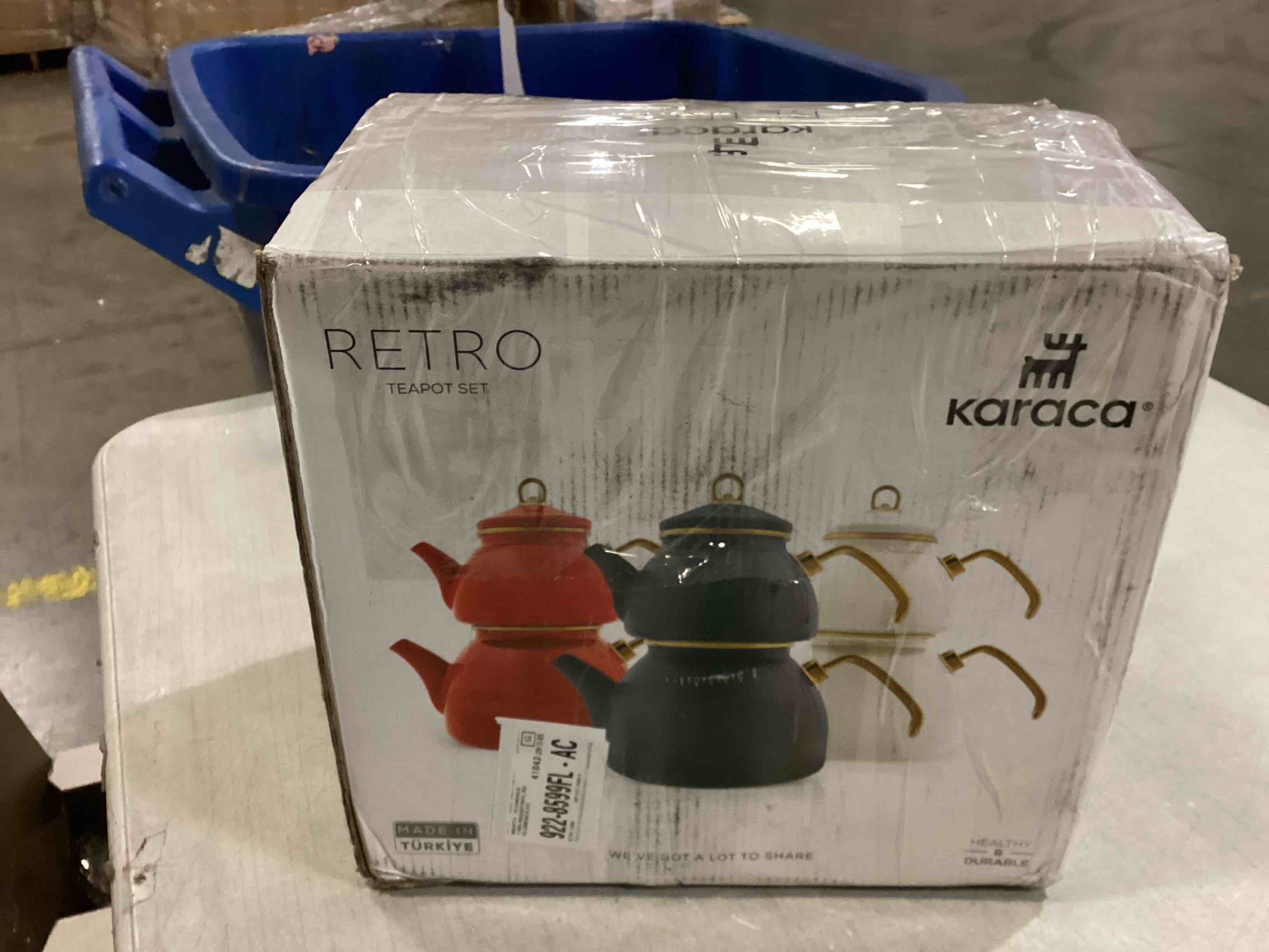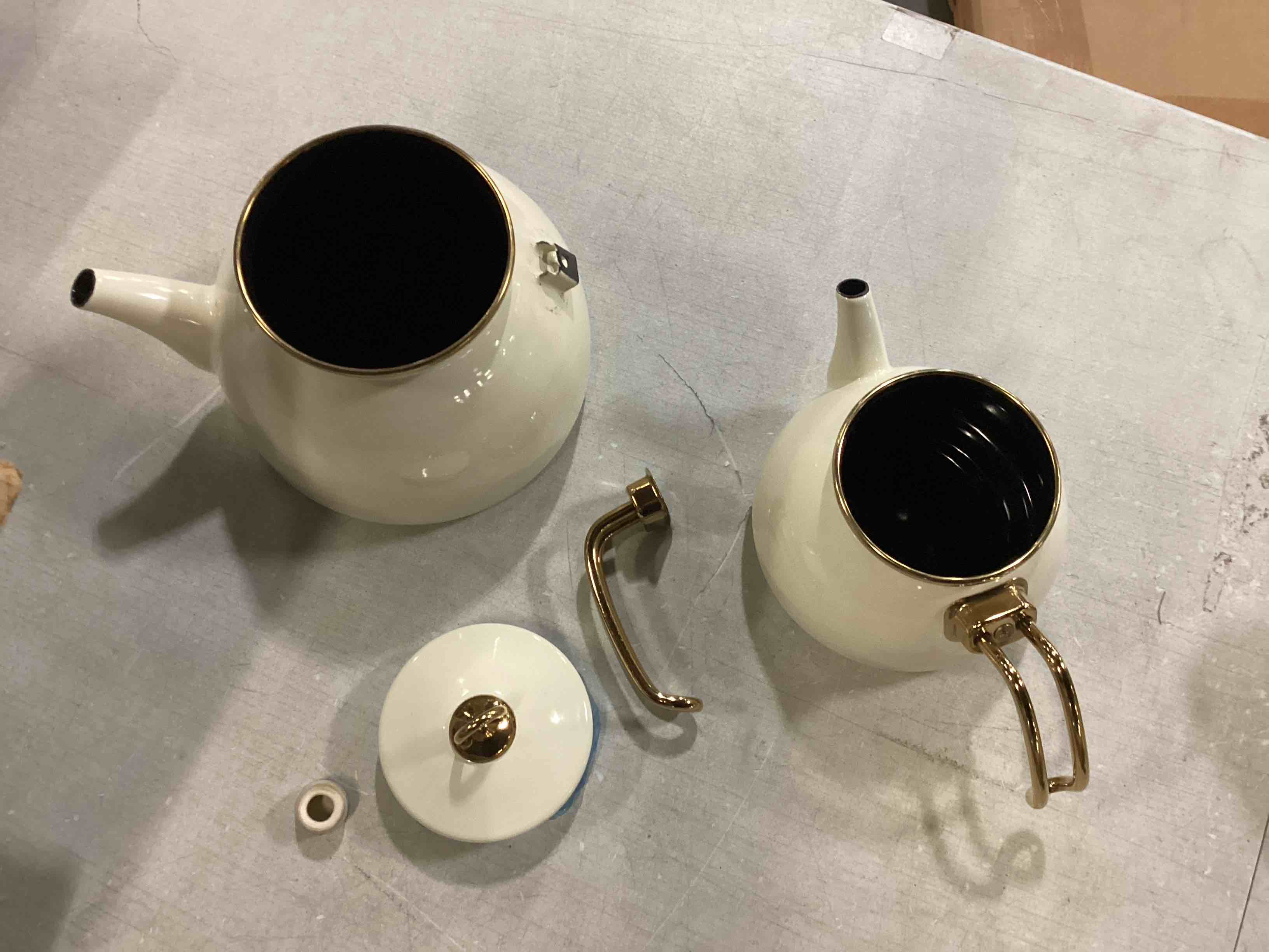 Retro Teapot Set Cream, Enamel, Teapot/Lid (1.1 Lt, 2.4 Lb), Tea Kettle (2.3 Lt, 5 Lb), Titanium Coated Handles, Suitable For Induction