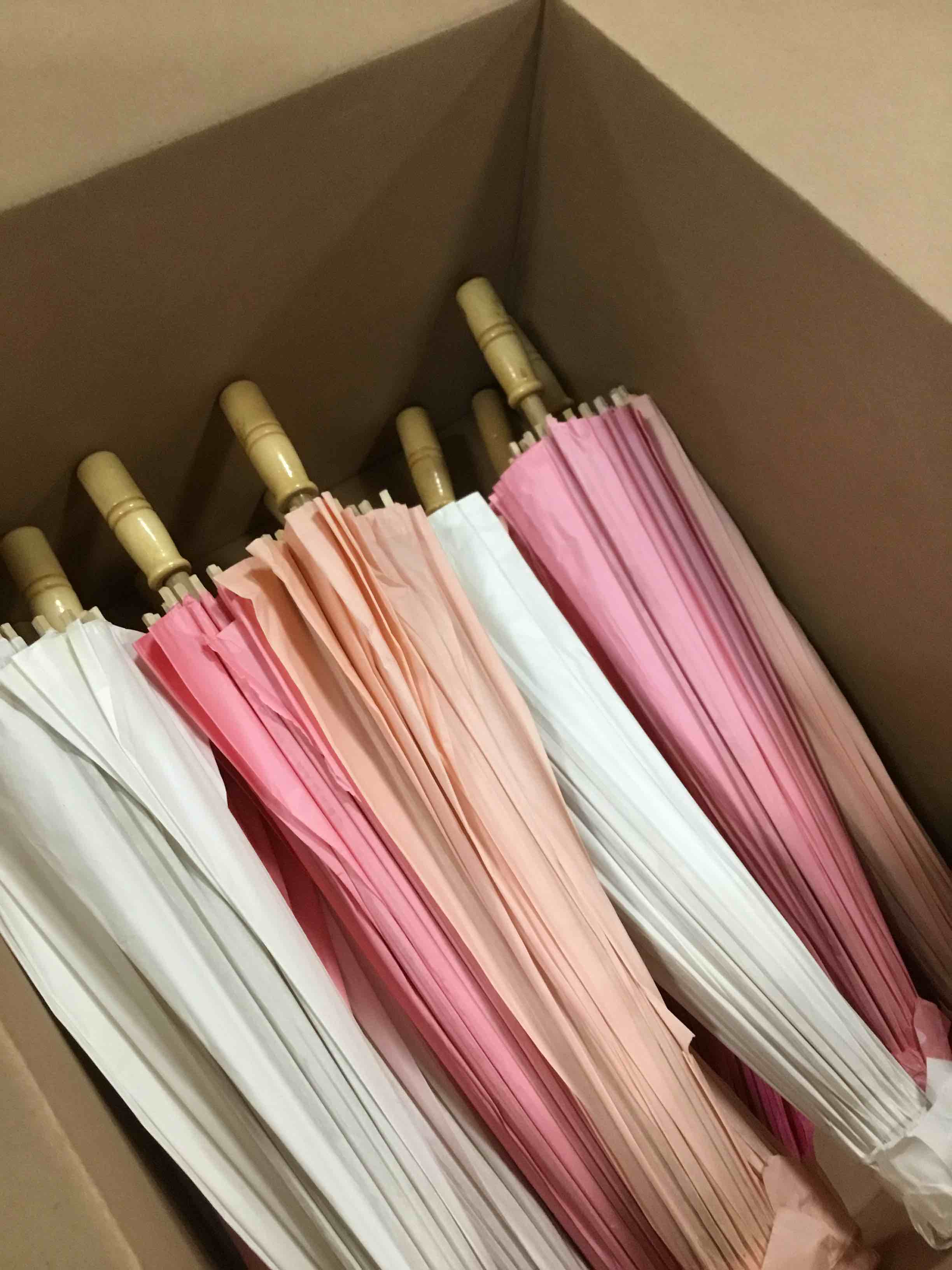 Sadnyy 33 Inches Paper Umbrellas Paper Decorative Chinese Japanese Parasol Umbrella DIY Oiled Painting Umbrellas Crafts for Wedding Bridal Party Decor(White, Pink, Light Pink,12 Pack)