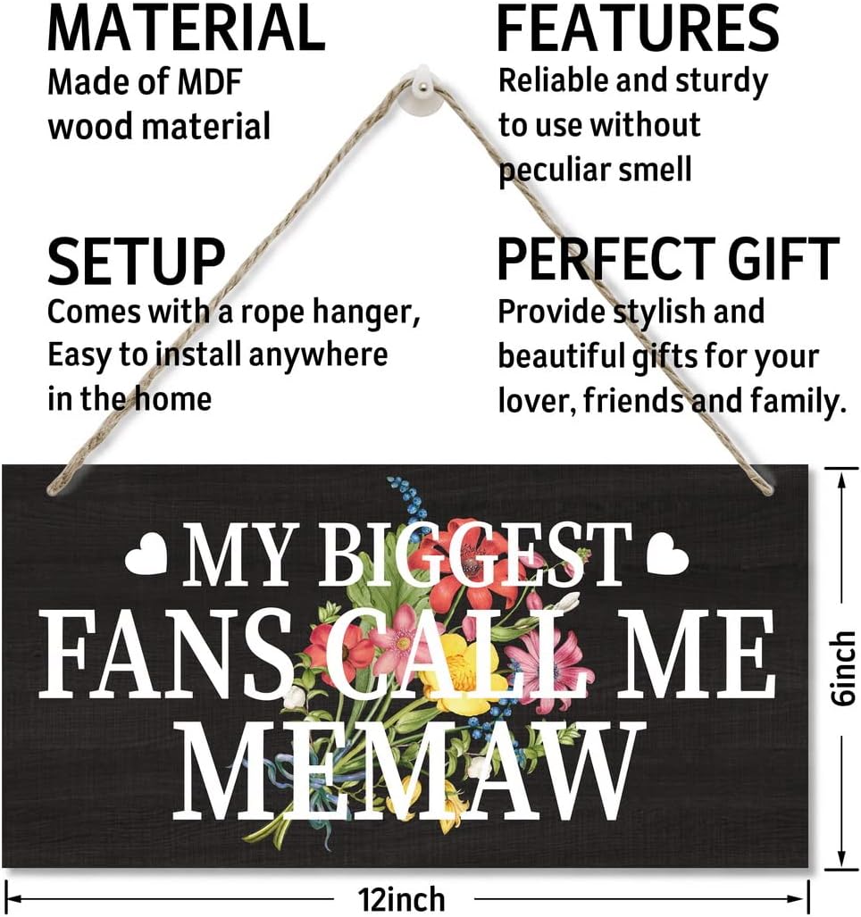 My Biggest Fans Call Me Memaw Sign, Printed Wood Plaque Sign, Hanging Wood Sign Home Decor, Home Decor Wall Art Sign, Decorative Wall Art, Home Accent, Memaw Decor, Gift for Grandmother 12" x 6"