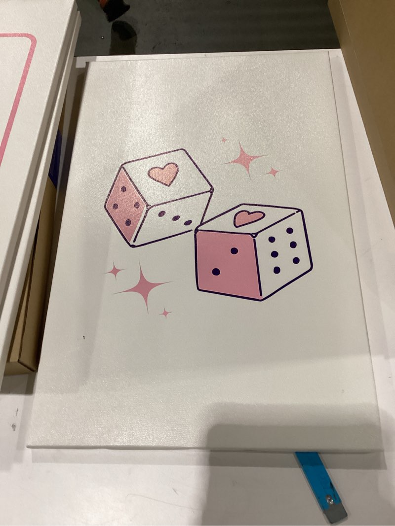 Framed 3pcs Pink Dice Poker Canvas Wall Art Trendy Ace of Hearts Posters 70s Vintage Pink Modern Que