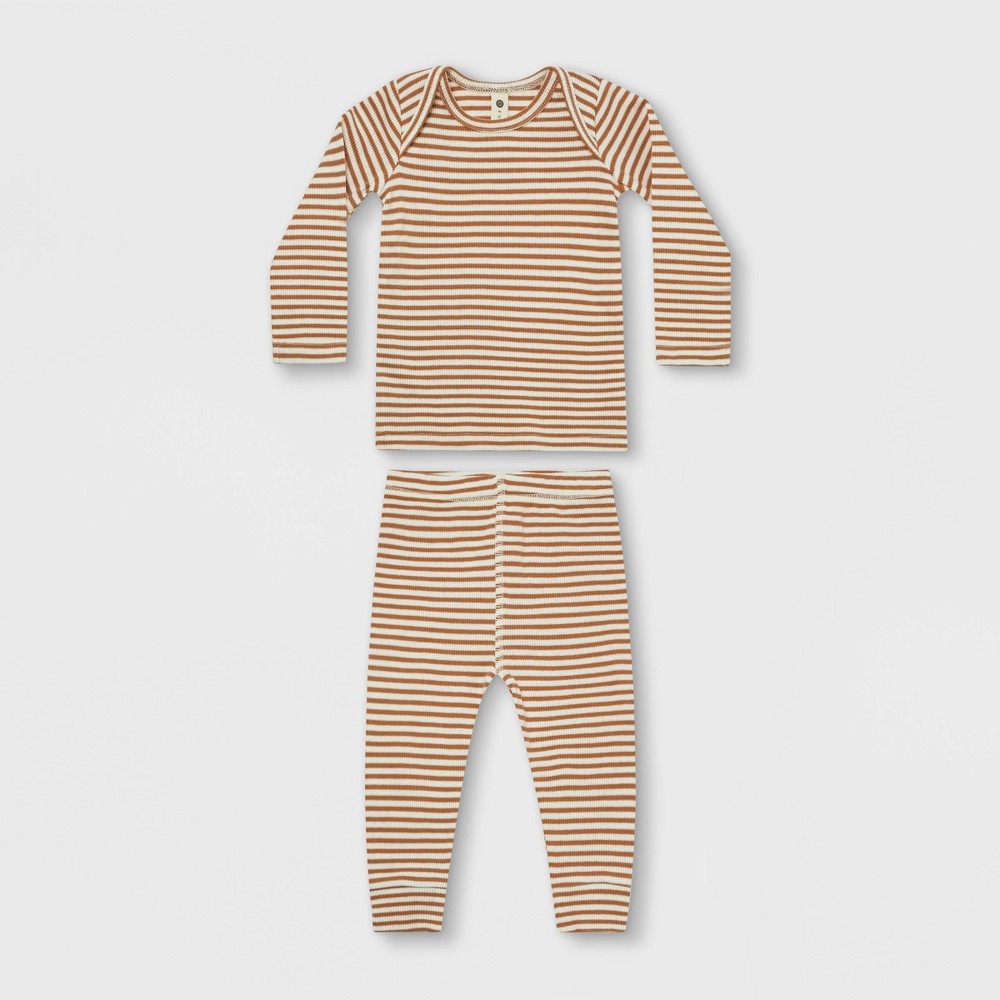 CURRENT BID: $6.75Q by Quincy Mae Baby 2pc Ribbed Spice Striped Top & Bottom Set - Ivory/Burgundy 6-12M
