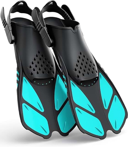 CURRENT BID: $0.05Greatever Snorkel Fins Adjustable Buckles Open Heel Swim Flippers Travel Size Short Swim Fins for Snorkeling Diving Swimming Adult Men Womens