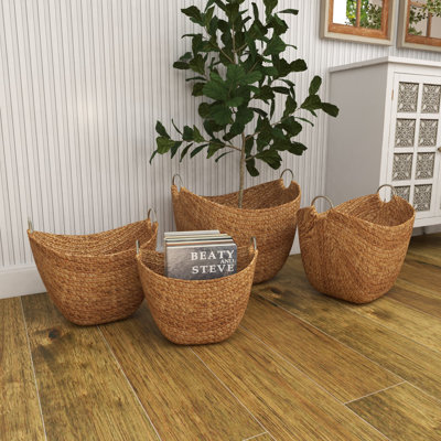 CURRENT BID: $3.504 Piece Brown Seagrass Handmade Woven Storage Basket with Metal Handles Set