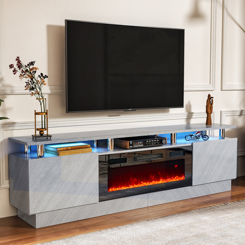 CURRENT BID: $17.01((INCOMPLETE )) 80" Media Console For TVs Up To 90" With Electric Fireplace, Large TV Stand with Led Light Color: Gray/Black