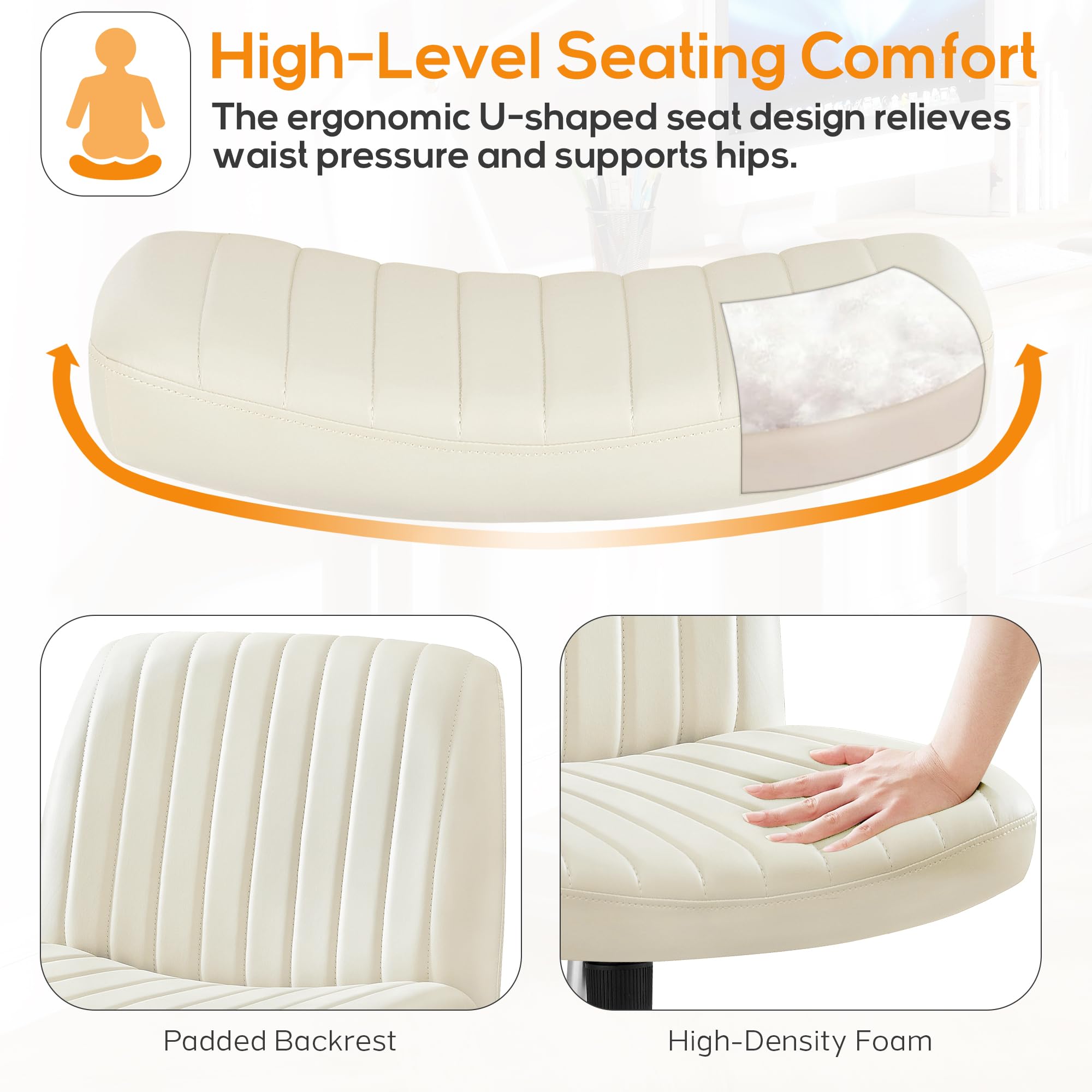 Criss Cross Chair, Cross Legged Office Chair, Wide Comfty Desk Chair, No Wheels Armless Computer Task Chair, Swivel Vanity Home Chair, Height Adjustable